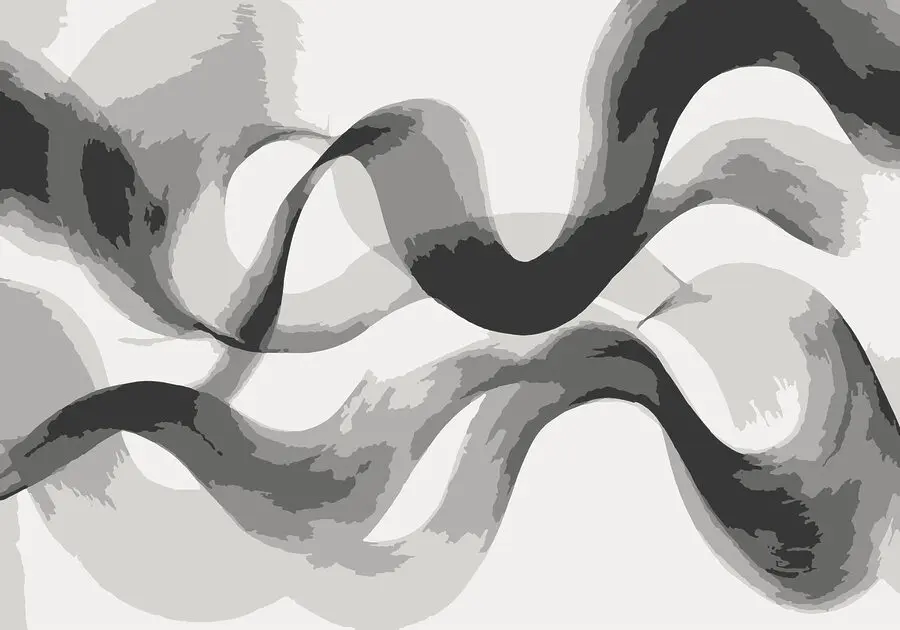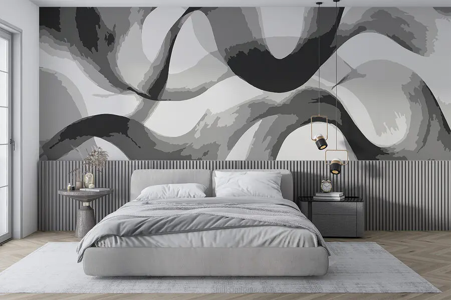 Proměňte svůj prostor pomocí této úžasné “Nástěnné malby šedobílé vířivé linie”. Představte si, že vstoupíte do místnosti, která působí moderně a zároveň přívětivě, kde kolem stěn tančí jemné křivky šedé a bílé barvy. Je to jako zahalit svůj domov do útulné, stylové šály!