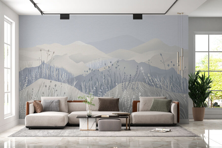 Proměňte svůj prostor v klidné útočiště díky této úžasné nástěnné malbě s motivem zvlněných hor a jemné trávy. Představte si, jak se probouzíte a tyto klidné odstíny se ovíjejí kolem vašeho pokoje a navozují pocit klidu jako ranní procházka přírodou. Akvarelový styl jí dodává umělecký nádech, téměř jako útulné snění na vaší zdi. Perfektně se hodí do obývacího pokoje nebo ložnice a vybízí k zastavení a nadechnutí. Navíc je skvělým začátkem konverzace – sledujte, jak přátelé obdivují váš bezchybný vkus! Jen si představte, jak popíjíte kávu v místnosti, kde máte pocit, že hory jsou jen na dohled. Tato nástěnná malba je jako mít malý kousek ráje přímo doma.