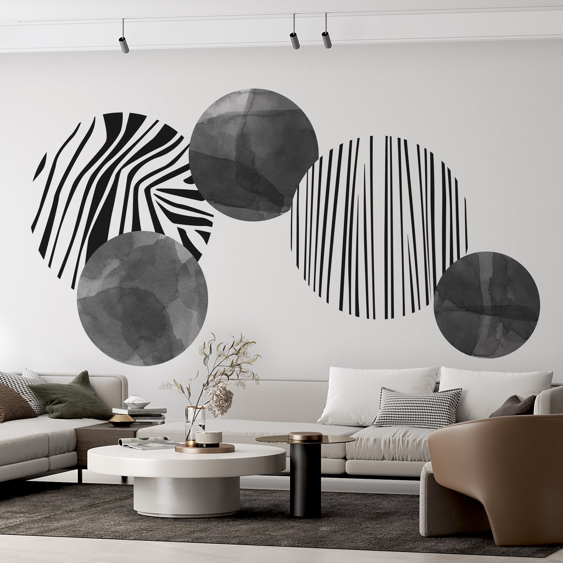 Proměňte svůj prostor pomocí této výrazné nástěnné malby “Skupina kruhů se zebřími pruhy”. Není to jen umění, je to i podnět ke konverzaci! Hravá kombinace odvážných černobílých zebřích vzorů vedle jemných, stínových kruhů dodává hloubku a střípek vzrušení. Představte si ho ve světlém obývacím pokoji nebo v útulném čtecím koutku – je to jako vnést trochu safari elegance přímo do vašeho domova. Tato nástěnná malba vyvažuje moderní vibrace s nádechem rozmarnosti, což je ideální pro dodání osobitosti. A přiznejme si, kdo by nechtěl mít na svých stěnách pocit, že je zasvěcen do stylového tajemství?