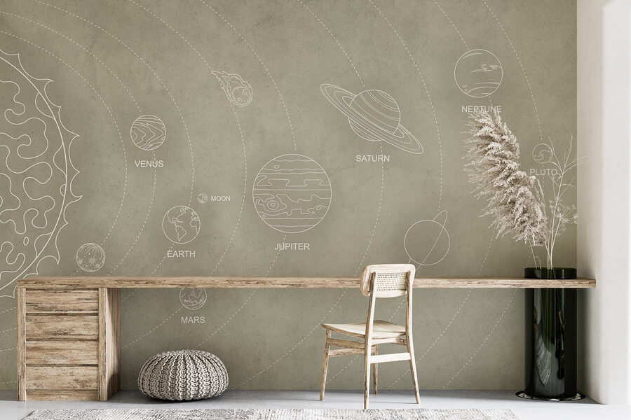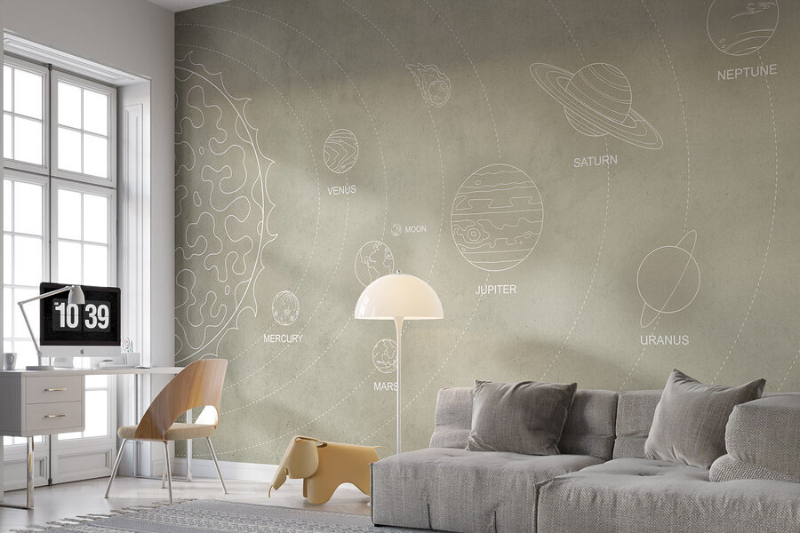 Proměňte svůj prostor v kosmickou říši divů s touto nástěnnou malbou “Diagram planet”. Představte si, že vejdete do místnosti, kde Merkur, Venuše a dokonce i Pluto jen tak odpočívají na stěně, jako by jim to tu patřilo. Je to jako mít místo v první řadě vesmíru – aniž byste potřebovali vesmírnou loď! Čisté linie a uklidňující tóny této nástěnné malby jsou ideální do pracovny, dětského pokoje nebo kamkoli jinam, kde by se hodil nádech nebeského kouzla. Ať už jste milovníci astronomie, nebo jen máte rádi dobrou hvězdnou atmosféru, tato nástěnná malba vzbuzuje zvědavost a vybízí ke snění o vzdálených galaxiích. Představte si ty nejmenší, jak ukazují na Mars a ptají se, jestli ho mohou navštívit. Není to jen dekorace, je to vstupenka do vesmíru plného fantazie.