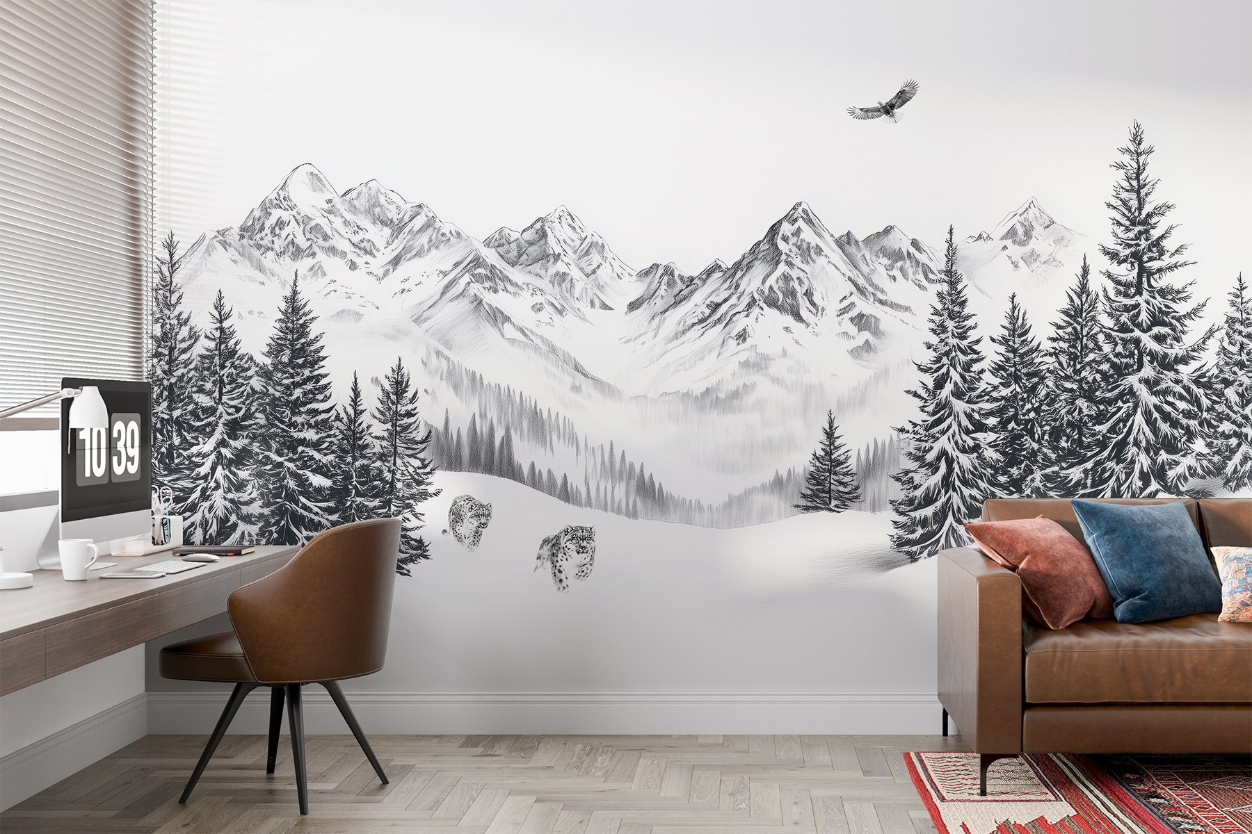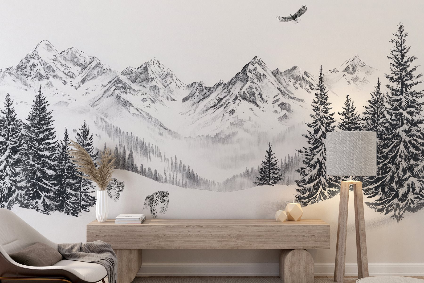 Proměňte jakoukoli stěnu v klidný únik s touto úžasnou zasněženou horskou krajinou. Představte si jemné ticho padajícího sněhu, jak se majestátní hory zvedají do mraků, zatímco nad hlavou plachtí osamělý pták. Je to jako přenést si do interiéru klidný kousek přírody. Představte si, že popíjíte ranní kávu, díváte se na tuto krásu a cítíte, jak vás zaplavuje příliv klidu. Tato nástěnná malba, která se skvěle hodí do útulných zákoutí nebo na odvážné stěny, nejenže dodává obrazu charakter, ale také vybízí ke snění o zasněžených výletech a čerstvém horském vzduchu. Navíc, kdo by nechtěl mít poblíž dvojici drzých leopardů? Je to podnět ke konverzaci a útěk v jednom!