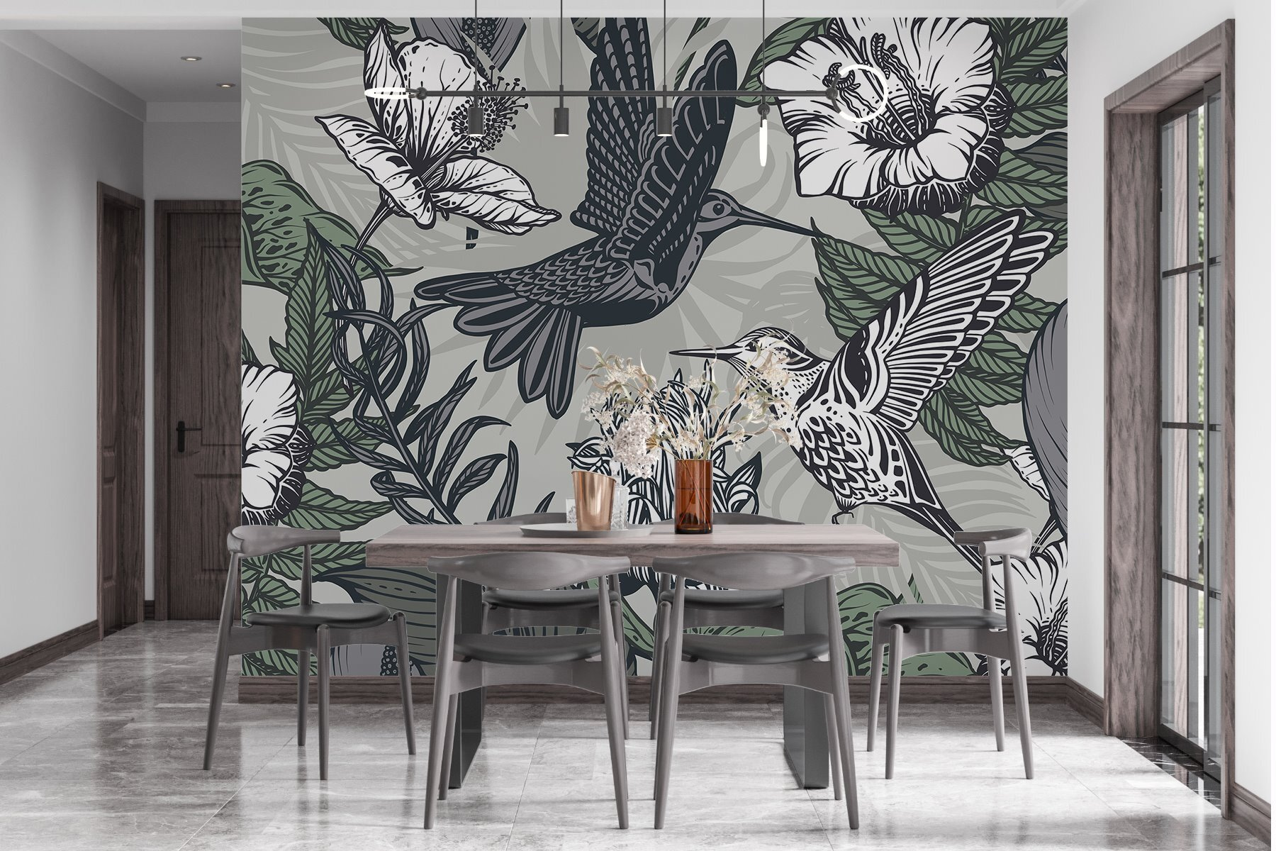Proměňte jakýkoli prostor v klidné útočiště s nástěnnou malbou “Pták letící nad květinami”. Představte si to: živí ptáci ladně poletující uprostřed bujné kvetoucí flóry, kteří zvou přírodu přímo k vám domů. Je to jako mít na zdi kousek ráje – kdo by to nechtěl?