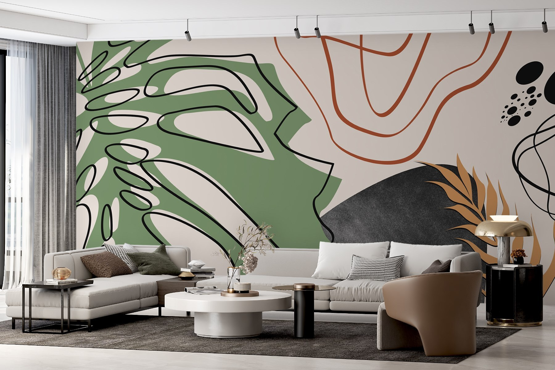 Proměňte svůj prostor pomocí této rozmarné nástěnné malby s hravou kombinací obličeje a listnatých divů. Je to jako přenést si tropickou džungli přímo do obývacího pokoje – samozřejmě bez vlhkosti! Barvy spolu tančí a vytvářejí dokonalé pozadí pro líná odpoledne nebo živá setkání. Představte si, že popíjíte kávu a přitom obdivujete toto umění; určitě to vyvolá jednu nebo dvě konverzace. Tato nástěnná malba, která je ideální pro dodání nádechu kreativity, působí svěže a zároveň útulně a zve dovnitř. Kdo by nechtěl kus přírody, který dokáže zlepšit náladu, že? Ideální pro každý prostor, který touží po troše šarmu a osobitosti!