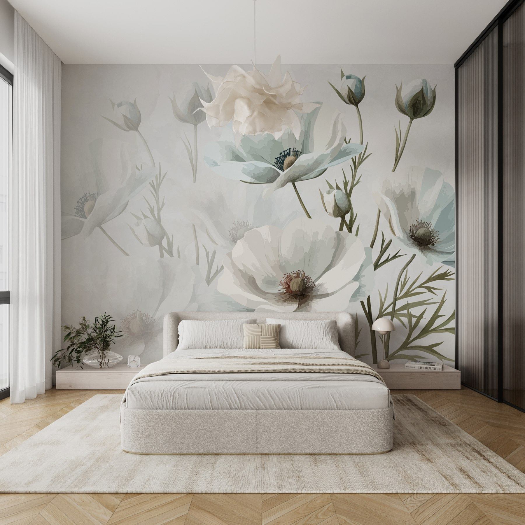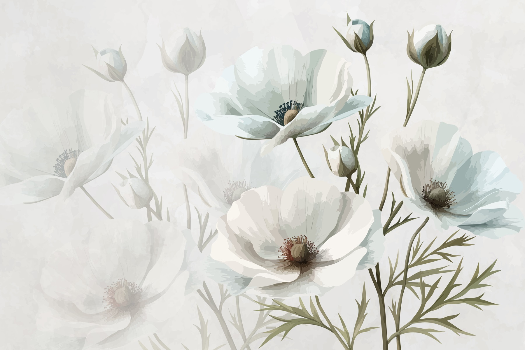 Proměňte svůj prostor pomocí nástěnné malby “Skupina bílých květů” – závan čerstvého vzduchu, který je stejně uklidňující jako procházka klidnou zahradou. Představte si, jak popíjíte kávu obklopeni jemnými akvarelovými květy, které šeptají eleganci a klid. Tyto jemné květiny nejsou jen dekorací, ale přinášejí do interiéru dotek přírody, díky kterému se každý okamžik cítí o něco výjimečnější. Je to jako mít malý kousek přírody přímo na zdi. Ideální pro líné neděle nebo zářivá, inspirativní rána – objímání této nástěnné malby je jako jemné objetí od samotné matky přírody. Připravte se na to, že si budete užívat krásné pozadí, které vyvolává radost každý den!