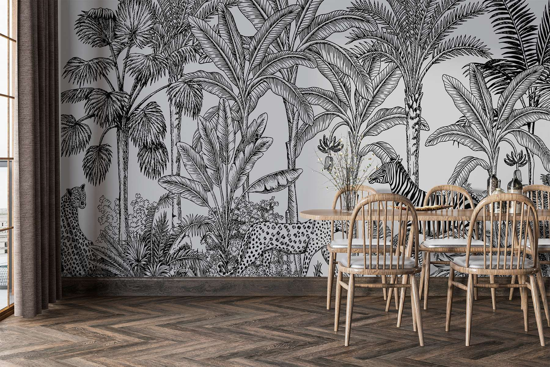 Proměňte jakýkoli prostor v divoké dobrodružství s touto nádhernou nástěnnou malbou se zebrami a leopardy lenošícími v bujné džungli. Představte si, že vejdete do svého obývacího pokoje a budete mít pocit, že jste vstoupili přímo do tropického ráje. Složité detaily zvířat a zářivé listí vybízejí k prozkoumání, takže každý pohled se stane mini dovolenou pro vaše smysly.