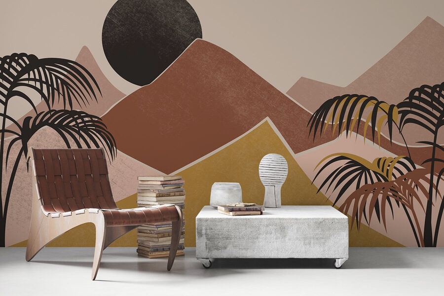 Proměňte každou místnost pomocí této úžasné nástěnné malby “Krajina s palmami a horami”. Představte si, že při každém pohledu na ni vstoupíte do útulného úniku. Teplé zemité tóny v kombinaci se siluetami pohupujících se palem z ní dělají dokonalou kulisu pro snění o vzdálených místech. Tato nástěnná malba našeptává “prázdninovou atmosféru” a v obývacím pokoji, ložnici nebo i v kreativním koutku dokáže zázraky. Působí jako jemné objetí od přírody, přímo u vás doma. Navíc ty hory slibují dobrodružství, aniž byste museli opustit pohovku – kdo by odolal?
