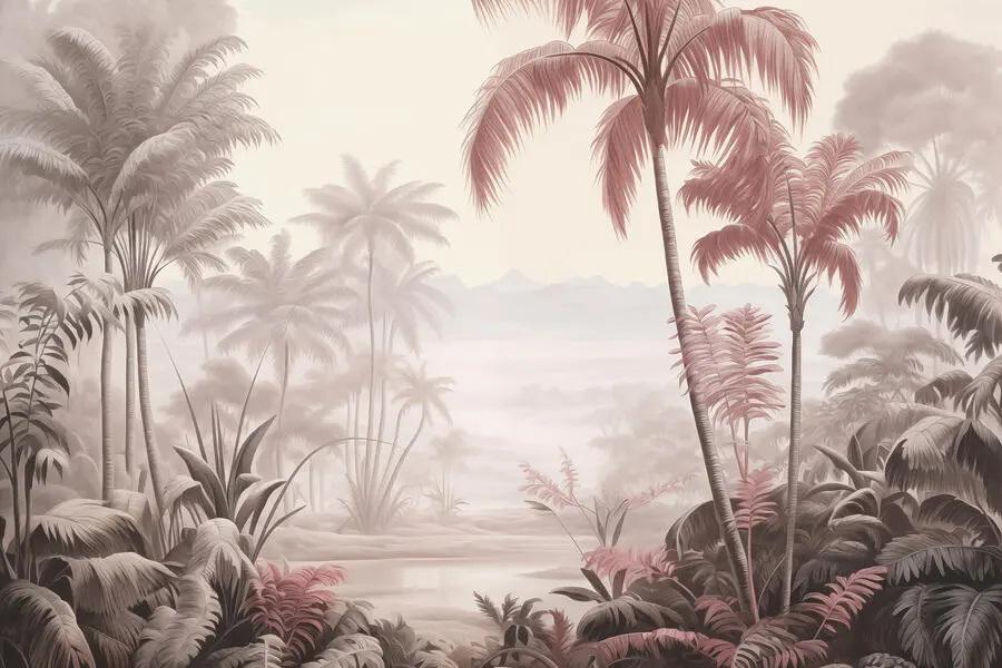 Představte si, že při každém pohledu na zeď vstoupíte do klidného tropického ráje. Tato úžasná nástěnná malba s půvabnými palmami a mlžnými horami šeptá sladké tóny klidného útočiště v džungli. Jemné barvy působí na vašich stěnách jako hřejivé objetí, které bez námahy rozzáří místnost. Je ideální pro vytvoření klidného čtecího koutku nebo pohodového místa pro denní snění. Představte si, jak popíjíte kávu a na kůži cítíte jemný vánek, i když ho vydává jen větrák! Je to jako přenést si kousek tropů dovnitř, bez vlhkosti a komárů. Váš prostor bude klidným únikem, příjemným a osvěžujícím – kdo by to nechtěl?