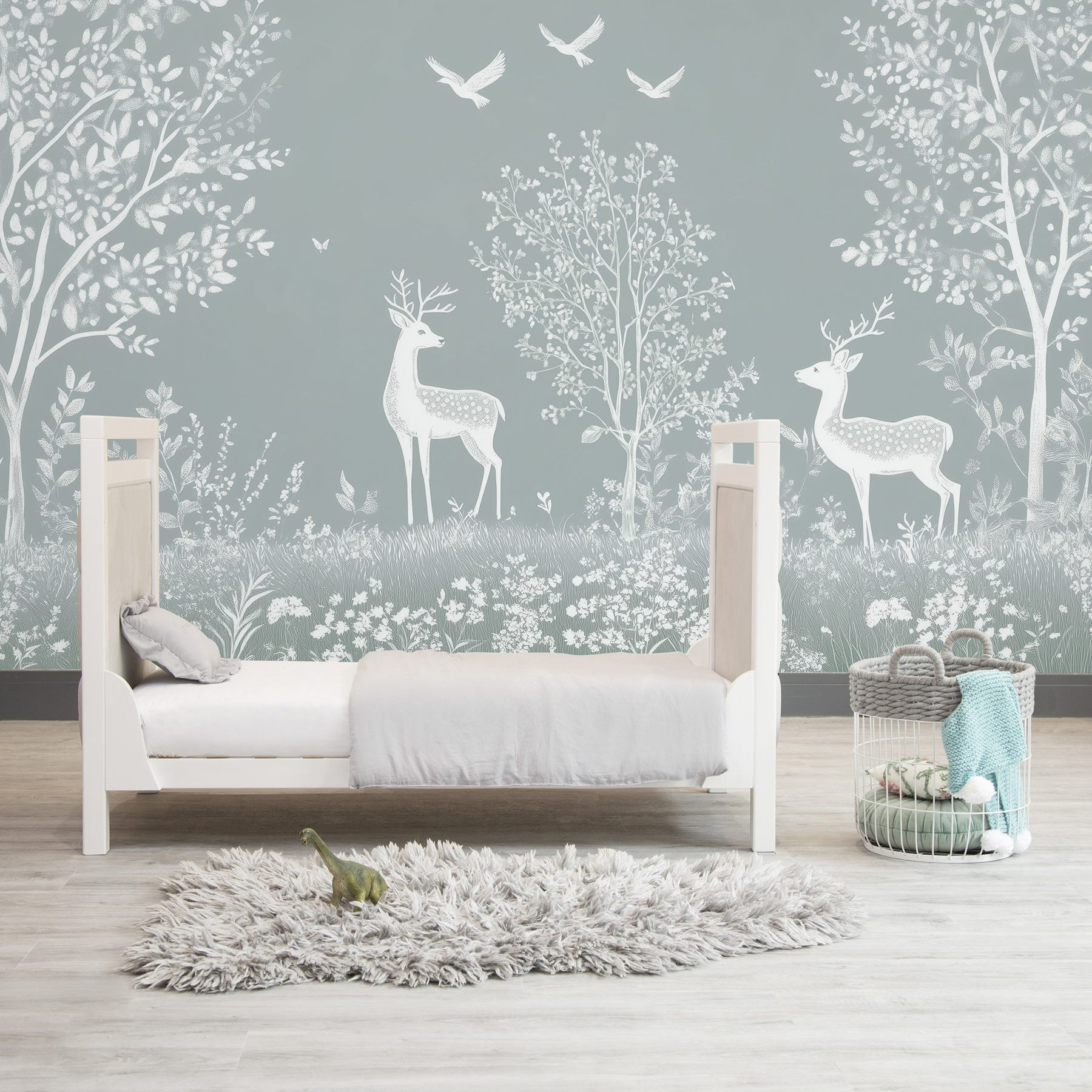 Proměňte svůj prostor v klidné útočiště s touto okouzlující nástěnnou malbou s půvabnými bílými jeleny, kteří se potulují v měkkém listnatém lese. Představte si, že vstoupíte do svého pokoje a budete mít pocit, že jste se zatoulali do zasněného lesa plného jemného šepotu přírody. Jemní ptáčci poletující nad ním dodávají nádech rozmarnosti a jsou dokonalou kulisou pro útulné večery nebo inspirativní rána. Je to jako mít klidné útočiště přímo doma! Ať už popíjíte čaj nebo si čtete knihu, tato nástěnná malba vybízí k těmto sladkým chvilkám klidu. Navíc je to skvělý začátek konverzace – kdo by si nechtěl povídat o svém tajném lese?