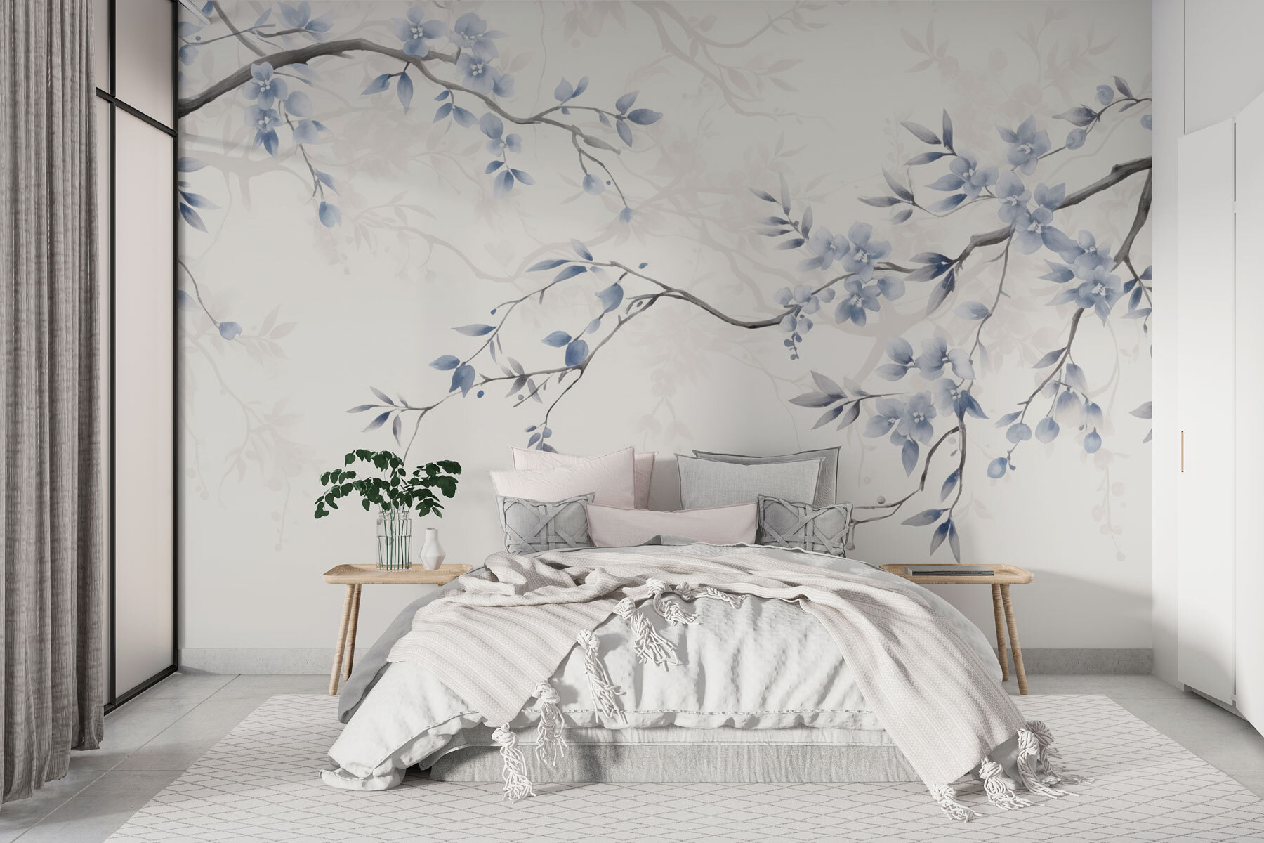 Proměňte svůj prostor pomocí této okouzlující nástěnné malby “Větev s modrými květy a listy”. Představte si, že každý den vstupujete do klidné japonské zahrady – klidné, mírumilovné a trochu kouzelné. Jemné akvarelové květy se jemně pohupují, jako by šeptaly tajemství přírody. Tato nástěnná malba, ideální pro útulný čtecí koutek nebo světlý kuchyňský kout, vybízí k rozkošnému snění. Představte si ranní kávu obklopenou těmito krásnými odstíny modré. Je to jako vnést do interiéru závan čerstvého vzduchu, díky němuž je každý pohled malým únikem. Přidejte si ji do svého domova a nechte krásu přírody, aby vám připomínala, že se máte zastavit a vážit si maličkostí.