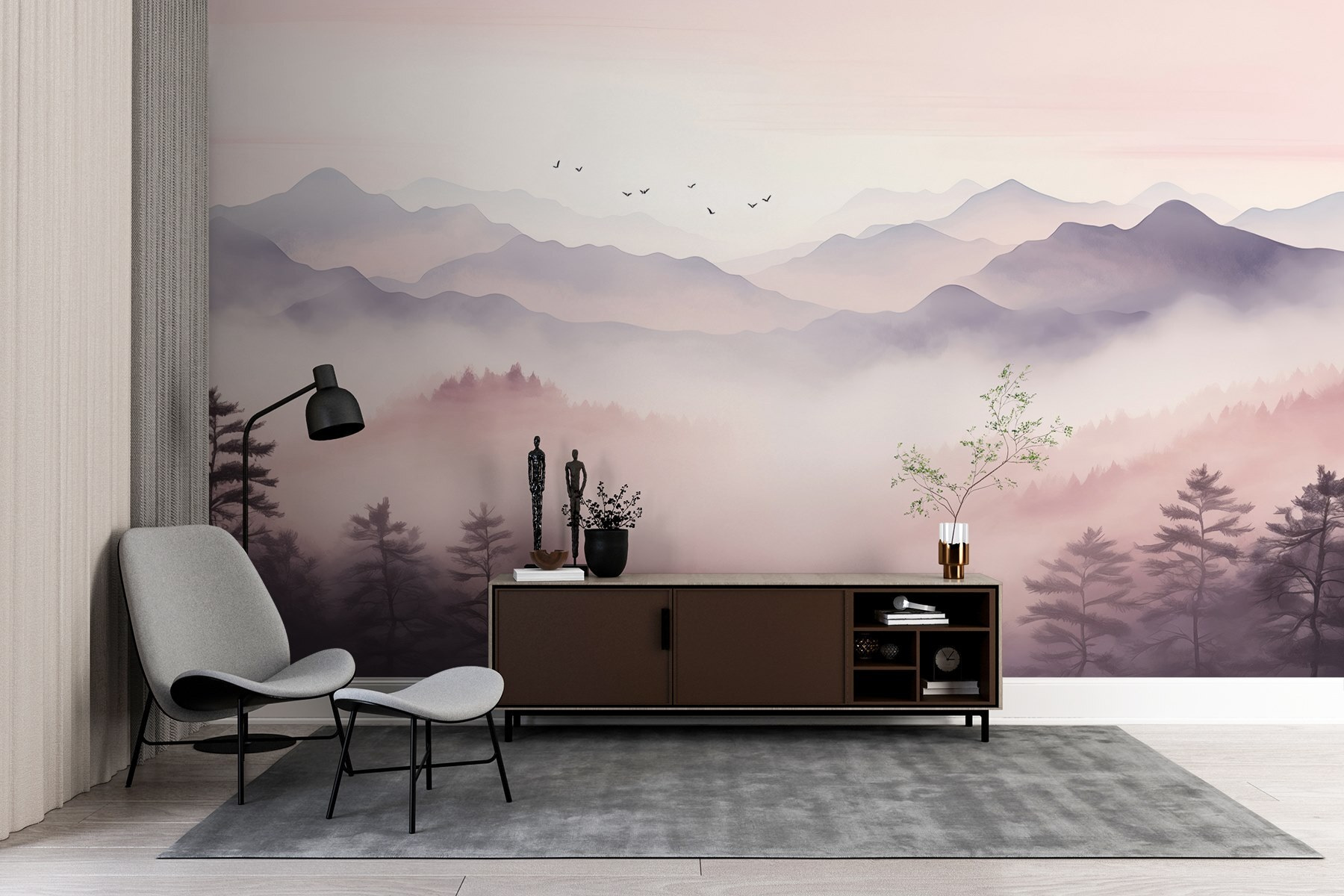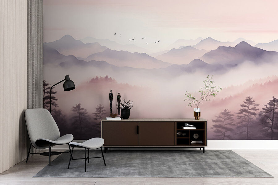 Proměňte svůj prostor pomocí nástěnné malby “Krajina se stromy a horami”. Tato úžasná nástěnná malba přináší klidnou atmosféru venkovního prostředí přímo do interiéru – představte si čerstvý horský vzduch, aniž byste potřebovali turistické boty. Jemné odstíny růžové a šedé se krásně prolínají a vytvářejí klidné pozadí. Představte si, že popíjíte kávu a díváte se přitom na tyto mírné svahy; je to jako útulný únik každý den. Stromy stojí vysoko, jako by šeptaly tajemství přírody. Tato nástěnná malba je ideální pro ty, kteří chtějí mít doma nádech klidu, je to závan čerstvého vzduchu! Navíc je to skvělý začátek konverzace – kdo by neměl rád dobré historky z hor?