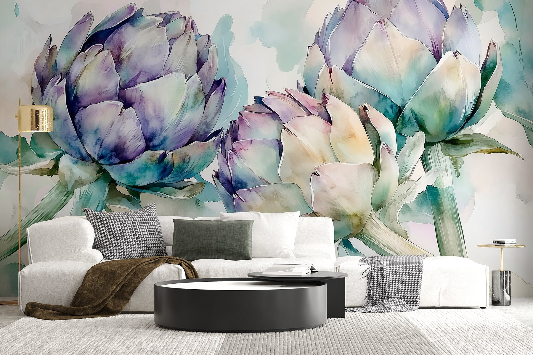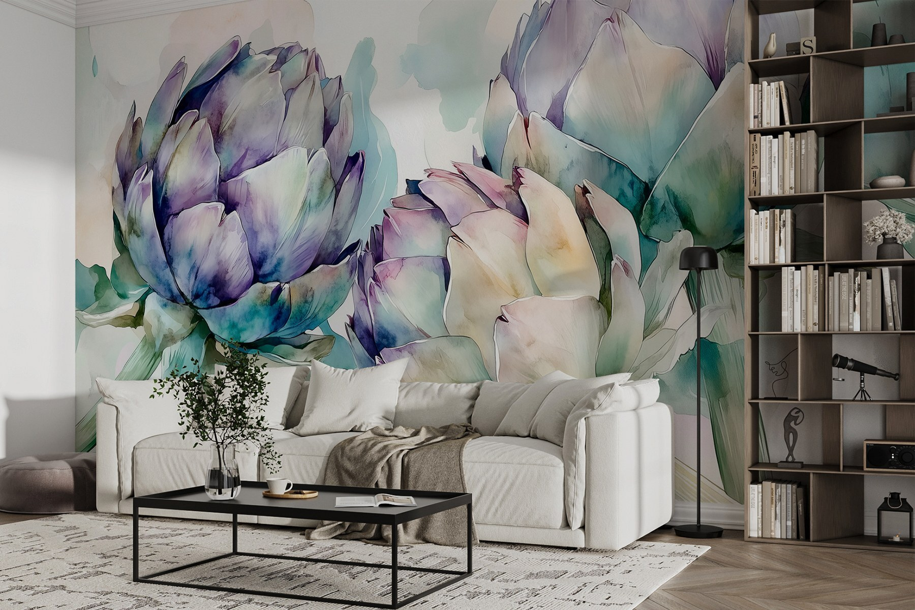 Proměňte jakýkoli prostor pomocí této úžasné nástěnné malby s jemnými artyčoky na měkkém bílém pozadí. Představte si, že vstoupíte do místnosti a okamžitě pocítíte přitažlivost klidných akvarelových vibrací této okouzlující zeleniny. Tato nástěnná malba, která se skvěle hodí do útulné kuchyně nebo světlem naplněné jídelny, našeptává teplo a kreativitu. Je to jako pozvat si do interiéru malou zahrádku bez hlíny a konví. Přátelé budou omdlévat a možná si budete častěji povídat o receptech z artyčoků – kdo by řekl, že mohou inspirovat takovou kulinářskou zvědavost? Kousek krásy přírody, který vnese do každodenního života trochu klidu.