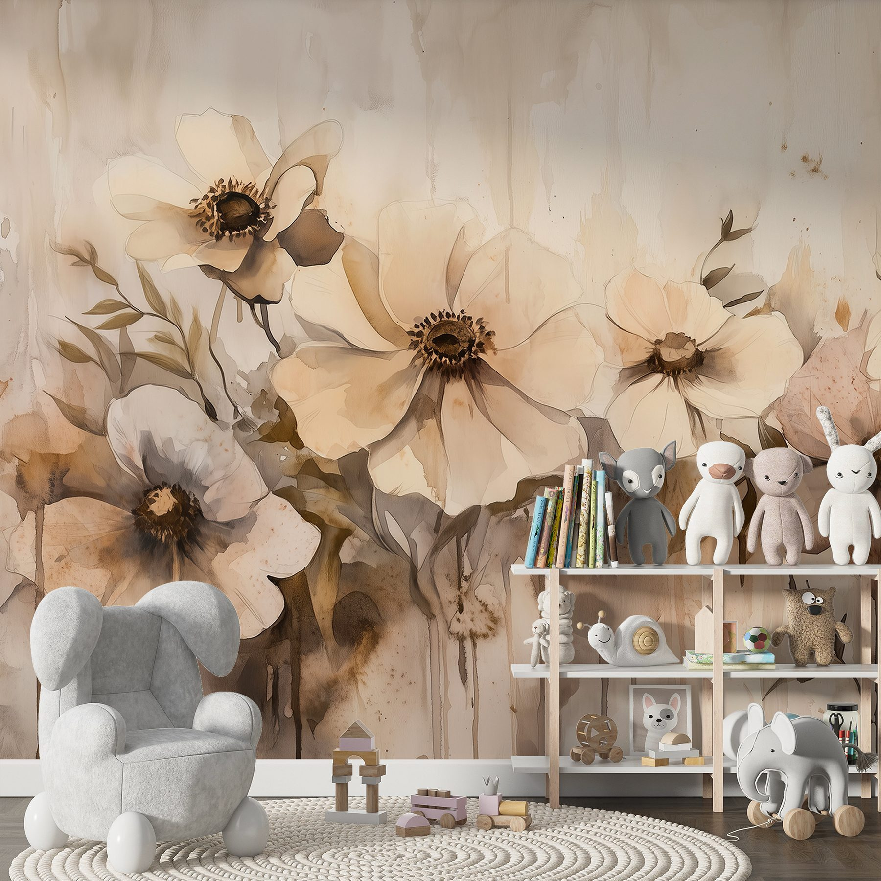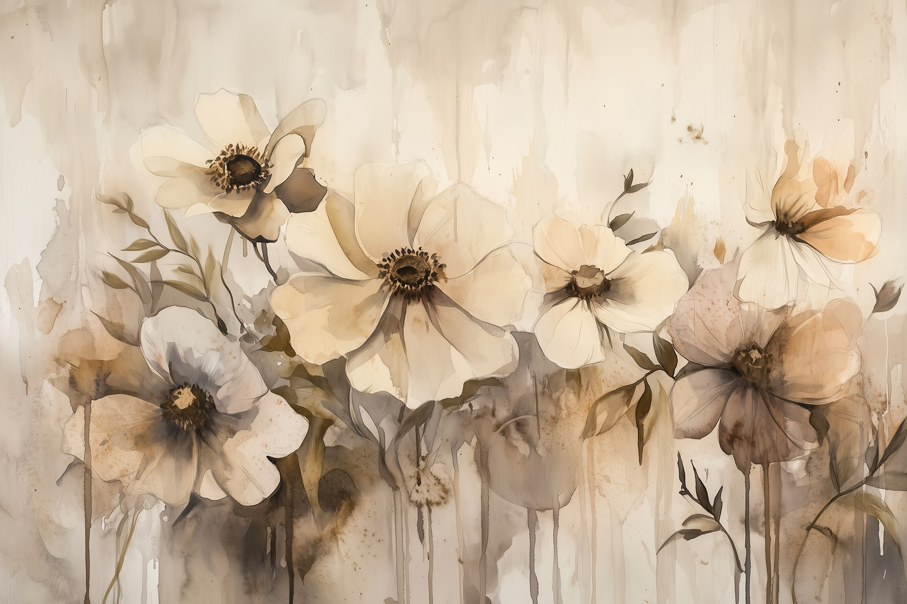 S touto úžasnou nástěnnou malbou s jemnými květinami v jemných akvarelových tónech proměníte každou místnost v klidné útočiště. Představte si, že vstoupíte do prostoru, kde tyto květy jako by tančily na stěně a vnášely do interiéru nádech přírody. Jemné odstíny vytvářejí uklidňující atmosféru – jako hřejivé objetí v chladném dni. Ideální pro útulný čtecí koutek nebo klidnou ložnici, je to druh umění, které vyvolává snění a živé rozhovory.