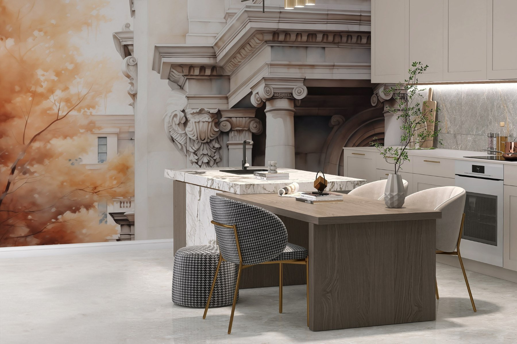 Proměňte každou místnost pomocí této úžasné nástěnné malby s elegantními sloupy a snovým výjevem z okna. Představte si, že se každé ráno probouzíte s tímto klidným výhledem – je to jako mít doma vlastní kousek architektonické krásy. Teplé odstíny se dokonale snoubí s dotekem přírody, takže prostor působí útulně a příjemně. Navíc je to fantastický začátek konverzace! Přátelé se jistě zastaví a budou obdivovat. Ať už se jedná o obývací pokoj nebo klidný čtecí koutek, tato nástěnná malba dodá interiéru šmrnc, aniž byste potřebovali luxusní galerii. Připravte se na pocit inspirace!