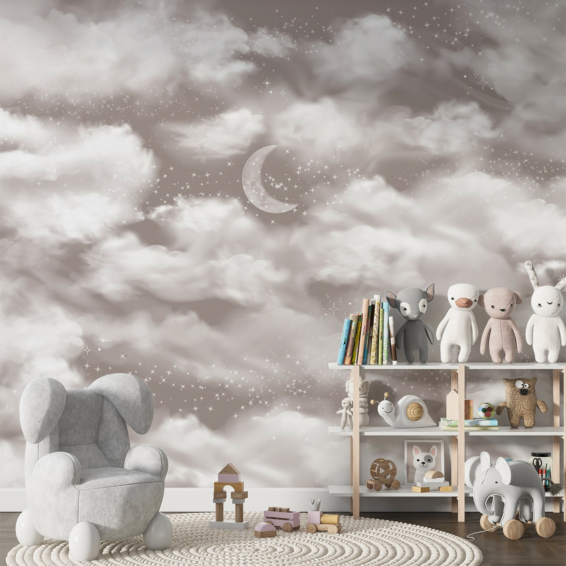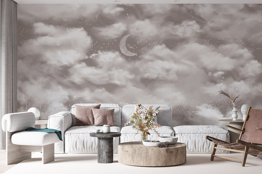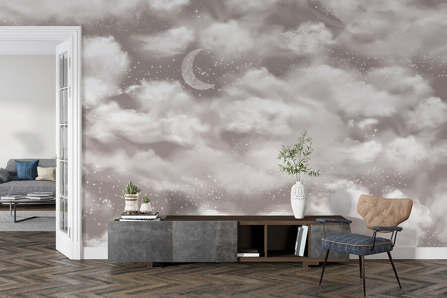 Proměňte svůj prostor ve snový únik s nástěnnou malbou “Měsíc na obloze”. Představte si, že se každý den probouzíte pod baldachýnem jemných mraků a třpytivých hvězd – zní to blaženě, že? Tato nástěnná malba přináší do interiéru kousek noční oblohy a dokonale vyvažuje útulnou atmosféru s nádechem rozmarnosti. Ať už se nachází v ložnici nebo v kreativním koutku, posype vaše stěny kouzlem.