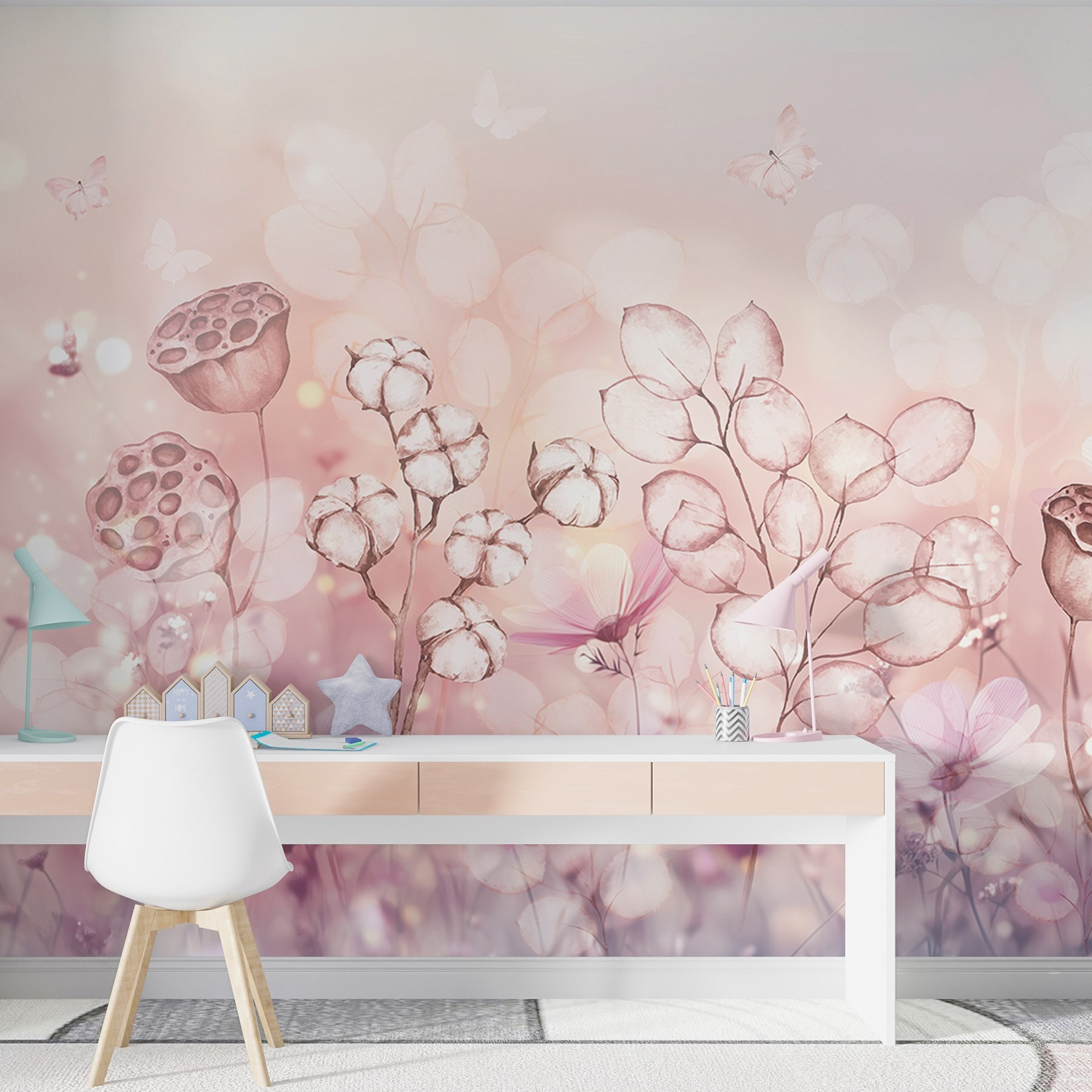 Proměňte svůj prostor v zasněný únik s nástěnnou malbou “Jemné květy v jemných pastelových barvách”. Představte si, že se probouzíte se vzdušnými květy, které víří s jemnými motýly, a každý tah vytváří pocit klidu. Tato fototapeta není jen dekorací, je to jako mít na zdi zahradu – bez pletí! Představte si, že popíjíte kávu a přitom se necháváte pohltit těmito klidnými barvami, které působí jako objetí přírody. Ideální pro útulný koutek nebo světlý obývací prostor, který vybízí k hřejivosti a nádechu rozmarnosti. Nechte tyto jemné pastely roztančit váš domov a rozjasnit každý okamžik!