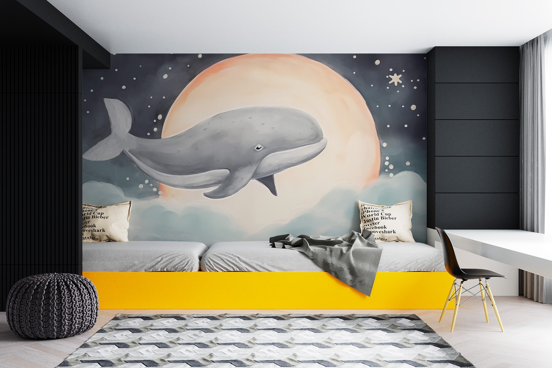 Seznamte se s nástěnnou malbou “Velryba na obloze”, kde se kouzlo oceánu setkává se snovými mraky. Představte si tuto majestátní velrybu, jak se bezstarostně plaví hvězdnou nocí a vnáší do každého prostoru klidnou atmosféru. Jako byste si do svého domova přinesli kousek oceánu – samozřejmě bez slané vody. Perfektně se hodí pro pobřežní tématiku nebo i pro rozmarný dětský pokoj, vzbuzuje zvědavost a úžas. Představte si útulné večery strávené pohledem na tohoto něžného obra – kdo by se necítil trochu uvolněněji? Díky jemným akvarelovým odstínům a přívětivé atmosféře se tato nástěnná malba stane předmětem konverzace na každé stěně. Ponořte se do dekoru, který působí jako objetí z moře!