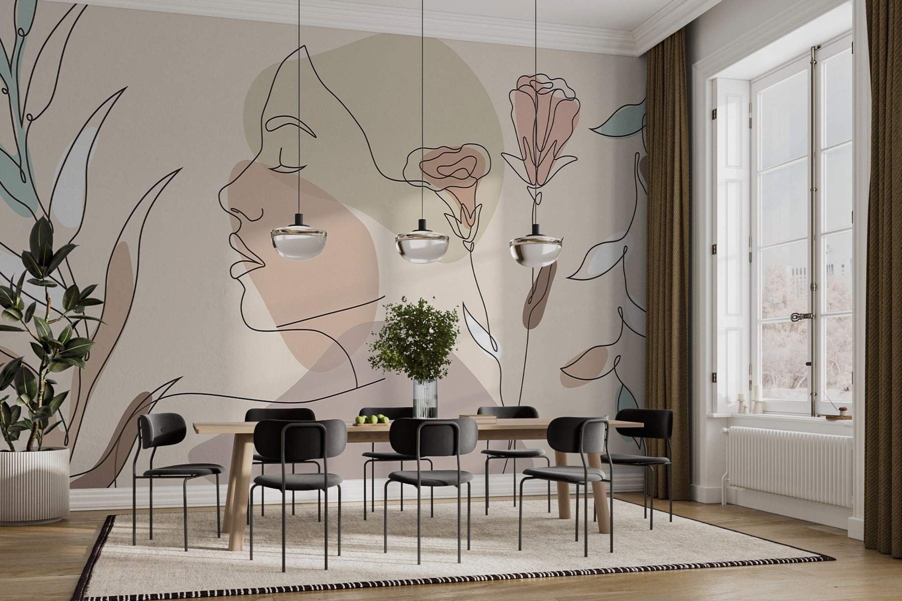 Proměňte svůj prostor pomocí této okouzlující nástěnné malby s klidnou ženskou tváří zdobenou jemnými květinami. Je to jako mít umělecké dílo, které vdechne život každé místnosti. Představte si to: vejdete dovnitř a najednou je to trochu jako vstoupit do klidné zahrady, kde se krása snoubí s klidem. Jemné akvarelové tahy našeptávají eleganci, zatímco rozmarné linie vytvářejí hravý pohyb. Ať už se nachází v obývacím pokoji nebo v útulném koutě, tato nástěnná malba vyvolává radost a konverzaci. Ideální pro ty, kteří touží po doteku přírody v interiéru – je to jako přenést si ven bez všeho pylu! Dejte svým stěnám nový hlas a nechte je vyprávět příběh plný klidu a půvabu.