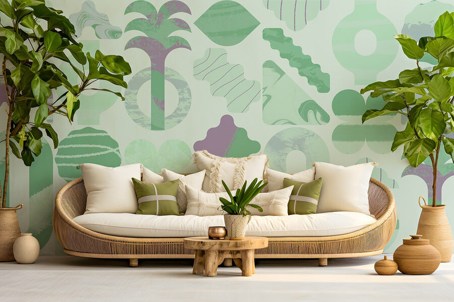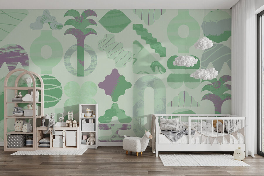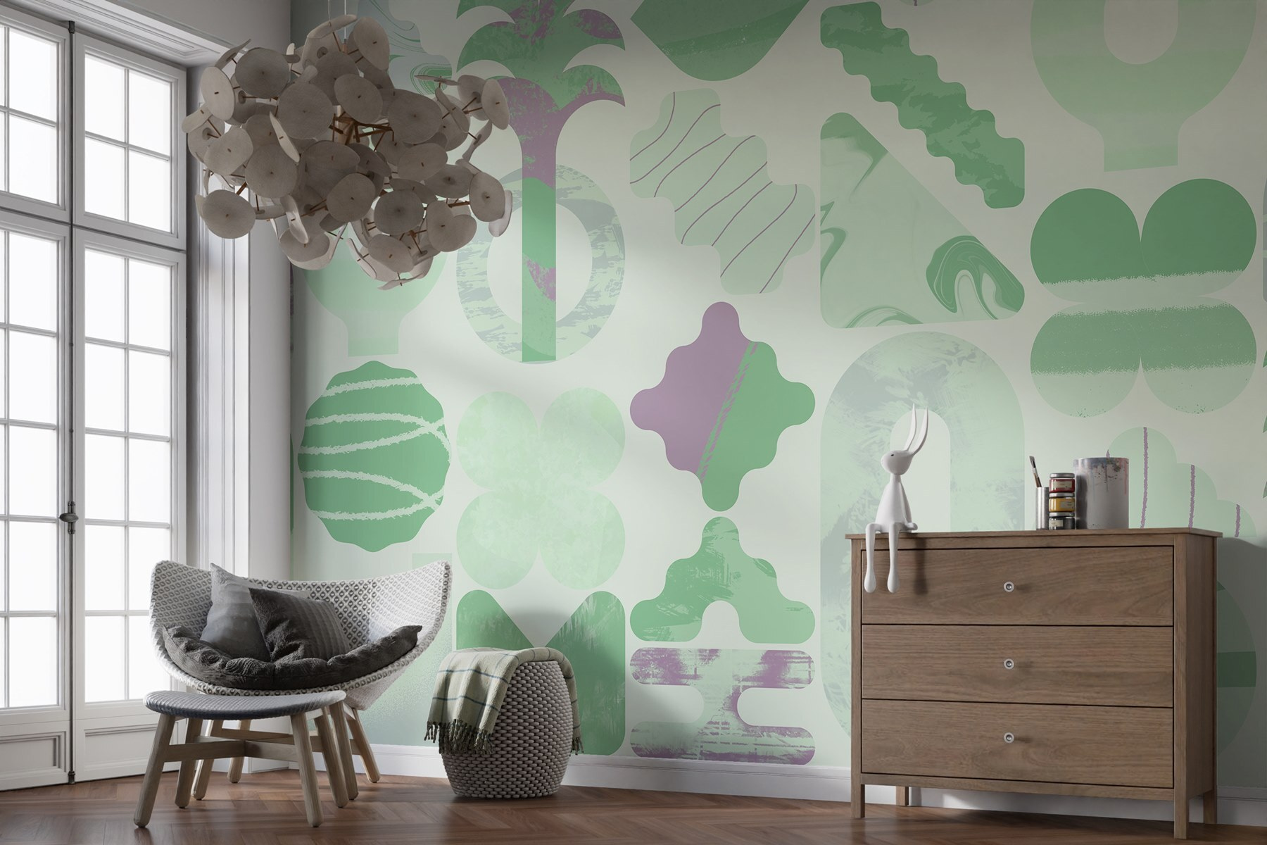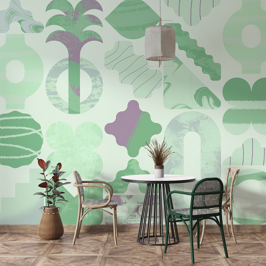 Proměňte jakýkoli prostor pomocí této náladové nástěnné malby “Nástěnné malby zelené a fialové tvary”. Představte si, že vejdete do místnosti a okamžitě se cítíte povzneseni hravými barvami a tvary tančícími po stěnách. Uklidňující zelená v kombinaci s fialovými odstíny vytváří příjemnou atmosféru, která dokáže proměnit nudný kout v útulné útočiště. Není to jen dekorace, je to i podnět ke konverzaci! Představte si, jak hostíte přátele a sledujete, jak se jim rozzáří oči, když si všimnou nepředvídatelných detailů. Tato nástěnná malba je jako závan čerstvého vzduchu – ideální pro přidání kreativity bez nutnosti malovat. Kdo by řekl, že nástěnné umění může vzbuzovat takovou radost?
