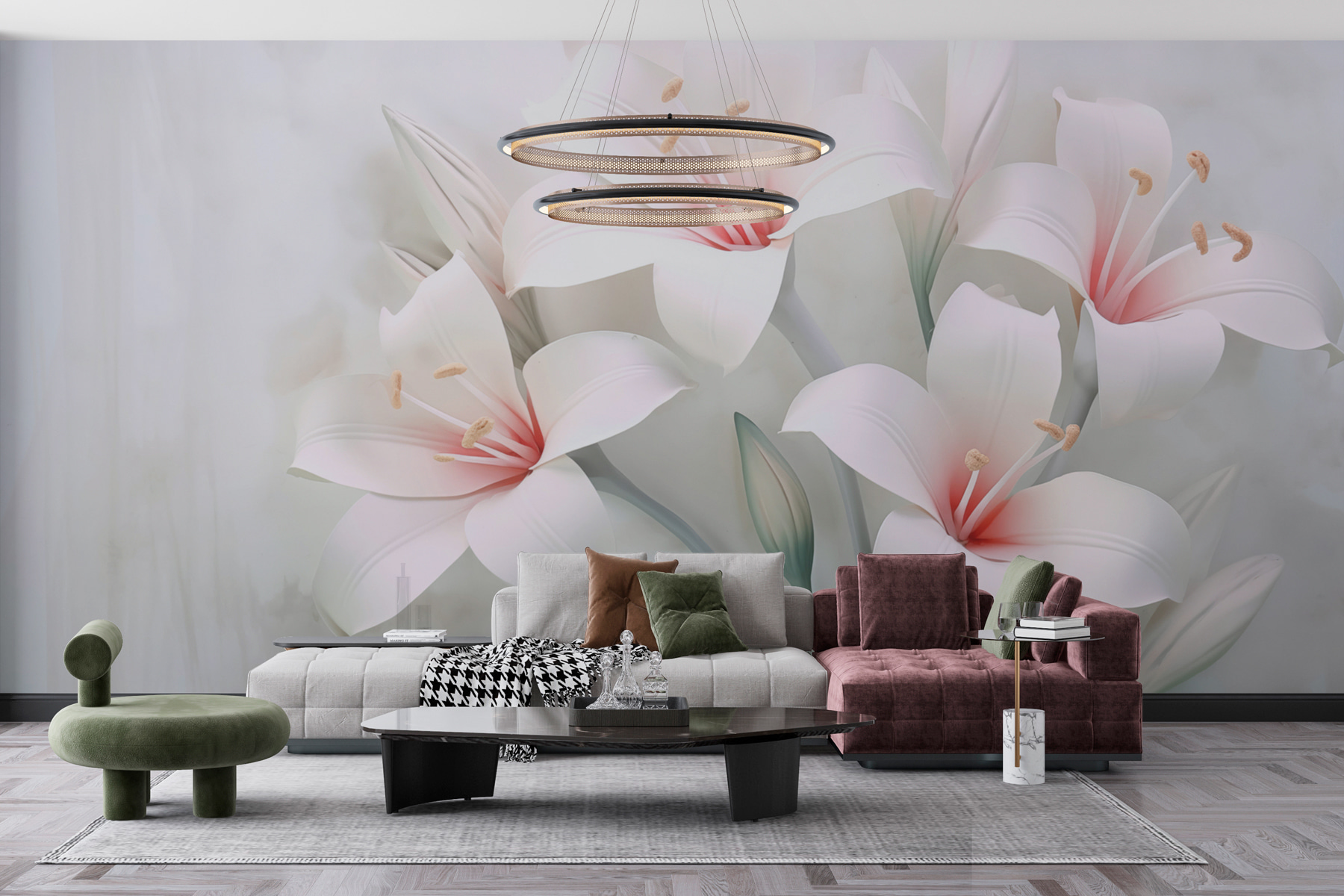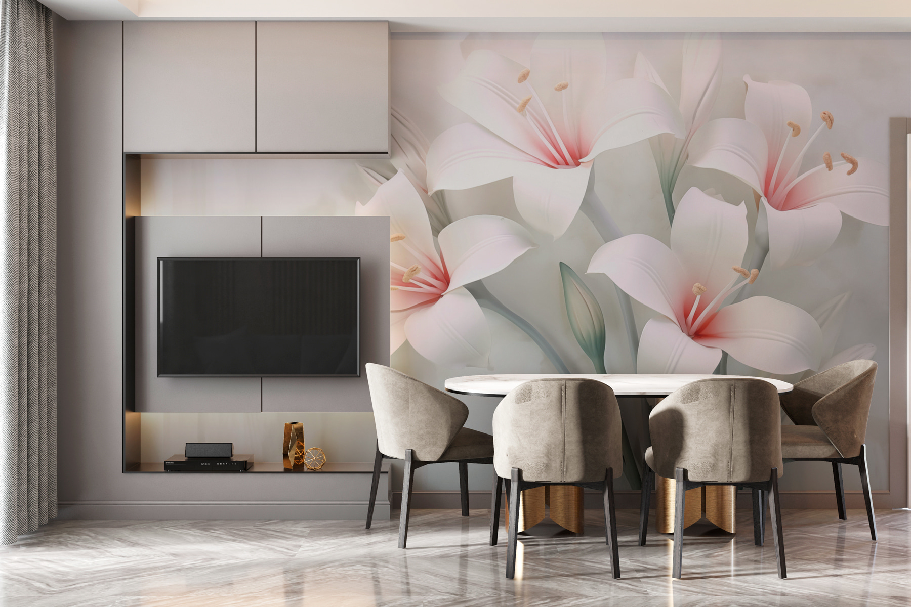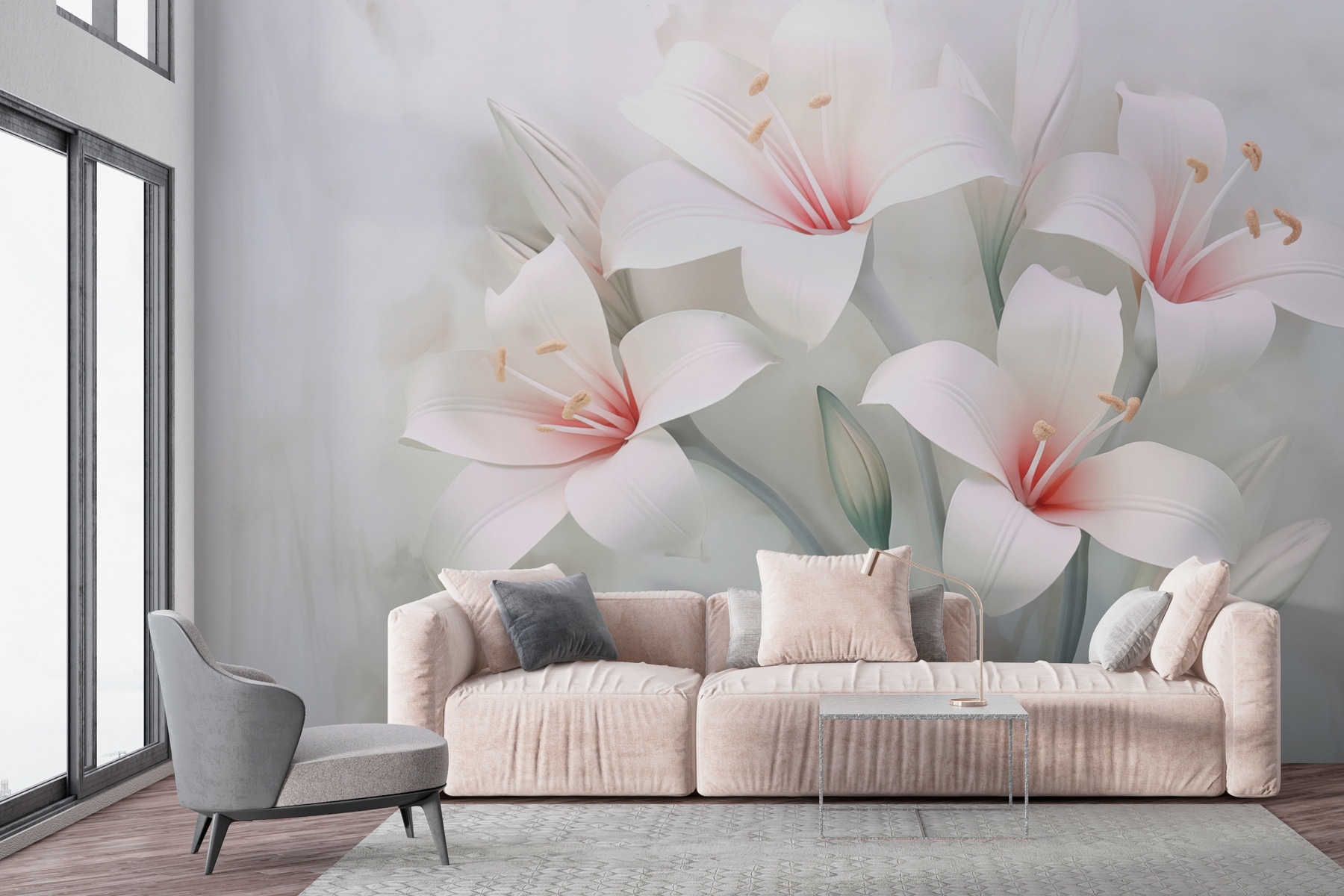 Proměňte každou místnost v klidnou oázu s “Jemnými květy v jemných odstínech”. Představte si, že vstoupíte do prostoru, který dýchá klidem – tyto jemné květiny vyzařují eleganci, aniž by byly příliš okázalé. Jsou jako hřejivé objetí jara a přinášejí do interiéru závan přírody.