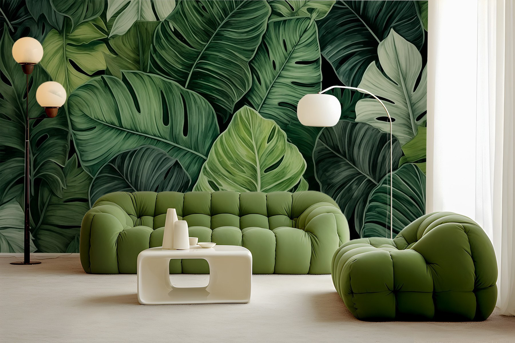 Proměňte svůj prostor pomocí nástěnné malby “Skupina zelených listů”, kde svěží zeleň přináší kousek přírody do interiéru. Představte si, že vstoupíte do tropického ráje, aniž byste museli opustit gauč. Tento design vás zahalí do sytě zelené barvy a navodí pocit klidu a osvěžení. Je to jako mít mini džungli přímo ve svém obývacím pokoji – ideální pro snění nebo jen lenošení s dobrou knihou. Přátelé budou přísahat, že máte ukrytou tajnou zahradu. Věřte nám, že vaše stěny vám poděkují za tuto živou, listnatou proměnu, díky níž je každý pohled jako závan čerstvého vzduchu.