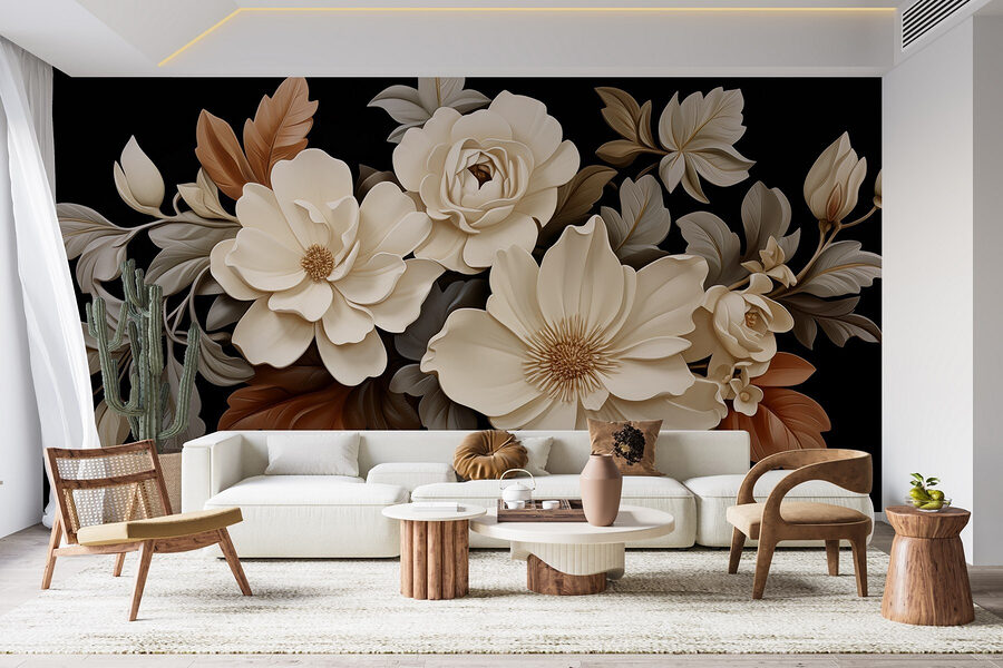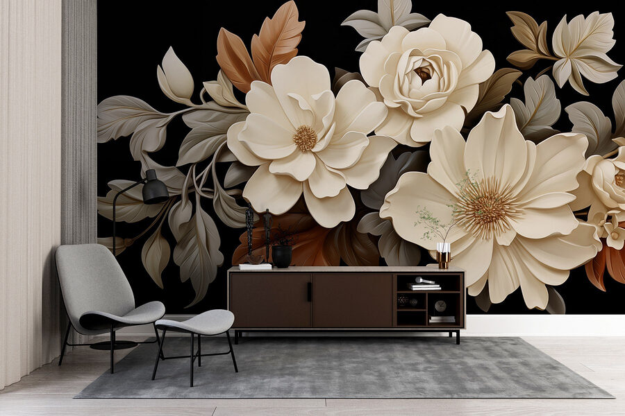 Proměňte jakýkoli prostor pomocí této úžasné nástěnné malby se skupinou jemných bílých květů uprostřed hnědých listů. Je to jako přenést si do interiéru kousek přírody bez otravného pylu! Představte si, že se probudíte s tímto elegantním výhledem – jak osvěžující, že? Jemné, krémové květy vystupují na elegantním černém pozadí a dodávají mu nečekanou eleganci. Tato nástěnná malba, která se skvěle hodí do útulné ložnice nebo stylového obývacího pokoje, přináší klidnou a zároveň sofistikovanou atmosféru. Není to jen dekorace, je to zážitek, závan čerstvého vzduchu na vašich stěnách! Tak směle do toho, nechte své stěny rozkvést!