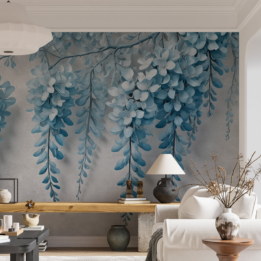 Proměňte svůj prostor v útulné útočiště s touto úžasnou nástěnnou malbou s větvemi zdobenými jemnými modrými květy. Představte si procházku klidnou zahradou, kde jemný vánek přináší sladké květinové vůně. Přesně takovou atmosféru přináší tato fototapeta! Je světlá a uklidňující, ideální do ložnice nebo obývacího pokoje. Představte si, že při popíjení ranní kávy nebo při odpočinku po dlouhém dni zahlédnete tyto krásné květy. Je to jako přenést si kousek přírody dovnitř, ale bez otravných alergií. Vaše stěny si zaslouží trochu květinového kouzla, že?