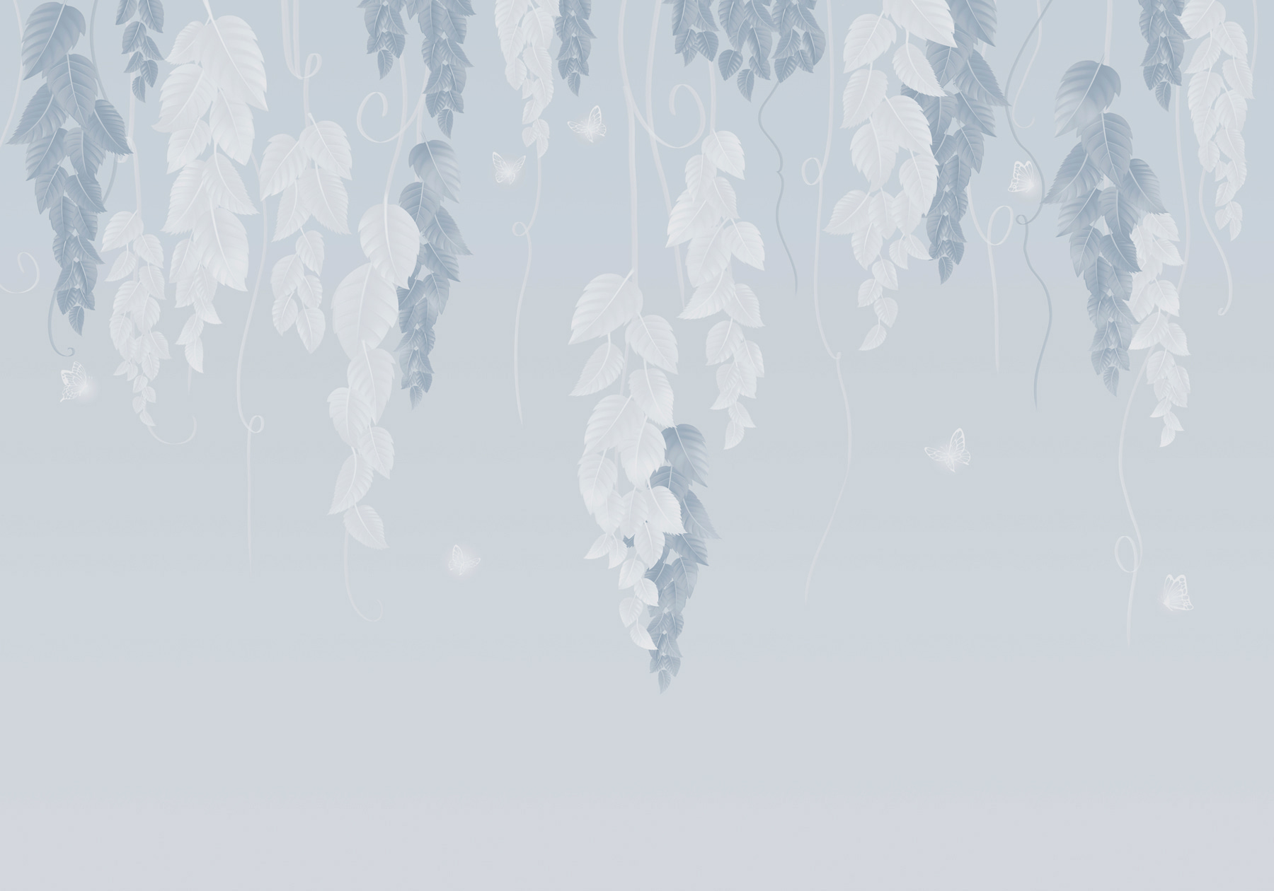 Fototapeta Bílé a modré listy a motýli Fototapeta Bílé a modré listy a motýli
