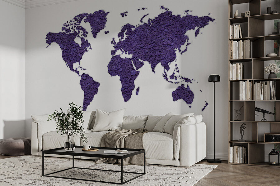 Proměňte svůj prostor ve svět plný dobrodružství s touto úžasnou nástěnnou malbou “Mapa světa”. Představte si to – každá země vyniká sytě fialovým odstínem a vybízí ke snění o vzdálených místech a vzrušujících cestách. Je to jako mít přímo na stěně podnět ke konverzaci! Přátelé se k ní budou potulovat a ukazovat na svá oblíbená místa – “Jé, tam jsem byl!”. A myslete na to, že pokaždé, když se na ni podíváte, můžete začít plánovat další cestu (třeba výlet do malé kavárny v Paříži, kterou jste vždycky chtěli vyzkoušet). Tato nástěnná malba se skvěle hodí do obývacího pokoje, ložnice nebo dokonce do útulné pracovny a nejen zdobí, ale i inspiruje! Kdo by řekl, že zeměpis může být tak stylový? Tapisérie textur a barev je dokonalým pozadím pro improvizované taneční večírky nebo klidná čtenářská zákoutí. Nechte své stěny promlouvat hlasitě!