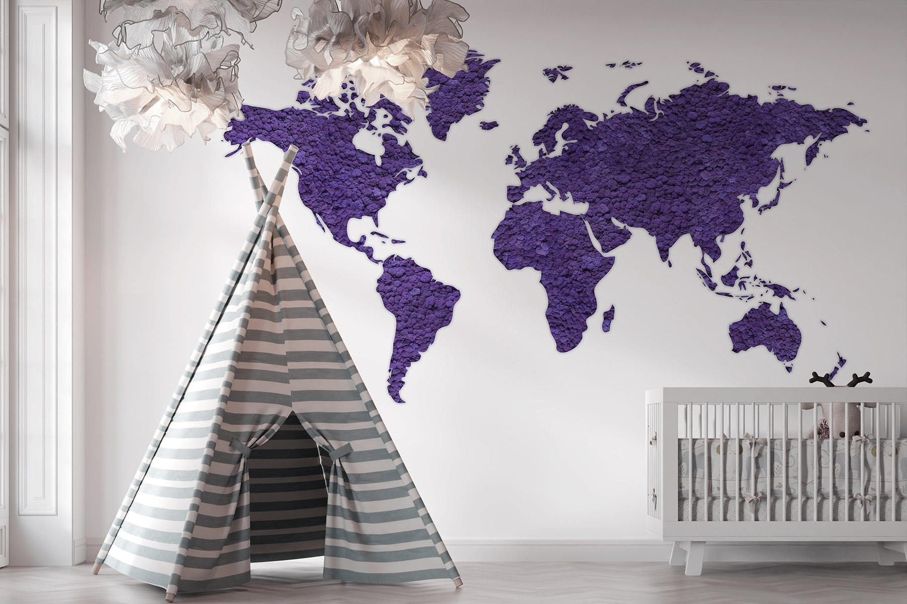 Proměňte svůj prostor ve svět plný dobrodružství s touto úžasnou nástěnnou malbou “Mapa světa”. Představte si to – každá země vyniká sytě fialovým odstínem a vybízí ke snění o vzdálených místech a vzrušujících cestách. Je to jako mít přímo na stěně podnět ke konverzaci! Přátelé se k ní budou potulovat a ukazovat na svá oblíbená místa – “Jé, tam jsem byl!”. A myslete na to, že pokaždé, když se na ni podíváte, můžete začít plánovat další cestu (třeba výlet do malé kavárny v Paříži, kterou jste vždycky chtěli vyzkoušet). Tato nástěnná malba se skvěle hodí do obývacího pokoje, ložnice nebo dokonce do útulné pracovny a nejen zdobí, ale i inspiruje! Kdo by řekl, že zeměpis může být tak stylový? Tapisérie textur a barev je dokonalým pozadím pro improvizované taneční večírky nebo klidná čtenářská zákoutí. Nechte své stěny promlouvat hlasitě!