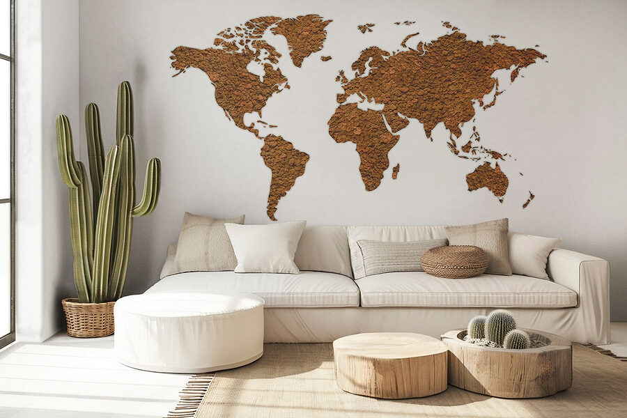 Proměňte každou místnost pomocí nástěnné malby “Mapa světa”. Tento působivý kousek je jako okno do nekonečných dobrodružství a vybízí vás, abyste si představili všechna místa, kde jste už byli, a ta, která teprve objevíte. Její zemité tóny jí dodávají hřejivou, příjemnou atmosféru, která je ideální pro vyvolání cestovatelských snů nebo prostě jen dodá charakter útulnému koutku. Představte si přátele, kteří se shromáždili kolem a ukazují si své oblíbené destinace, nebo děti, které se učí zeměpis, zatímco jsou uchváceny tímto krásným uměním. Není to jen dekorace, je to zážitek, podnět ke konverzaci, kus toulek přímo na vaší zdi. Kdo by řekl, že ztracení se může být tak příjemné?