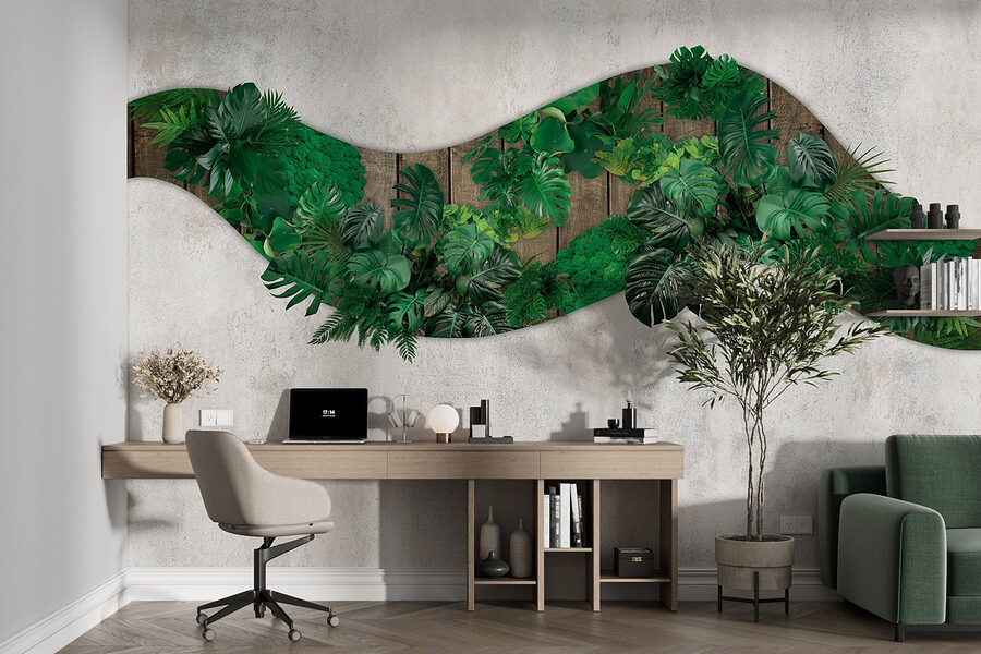 Proměňte každou místnost pomocí této úžasné nástěnné malby se zelenými listy, které se kaskádovitě rozprostírají na dřevěném povrchu. Představte si, že přímo z vašeho obývacího pokoje vstoupíte do živé džungle – každý detail listu přináší svěží tropickou atmosféru, které je těžké odolat. Jako by se příroda sama pozvala do interiéru a stěny ožily přívalem života. Představte si, jak si lebedíte na útulné pohovce, dovnitř proudí sluneční světlo a pozadí tvoří tato nádherná nástěnná malba. Mluvte o okamžitém zlepšení nálady! Ať už se jedná o domácí kancelář nebo odpočinkovou zónu, je to perfektní volba pro každého, kdo chce přidat trochu zábavy a vkusu. Navíc, kdo by neměl rád nádech venkovního prostředí, bez brouků?