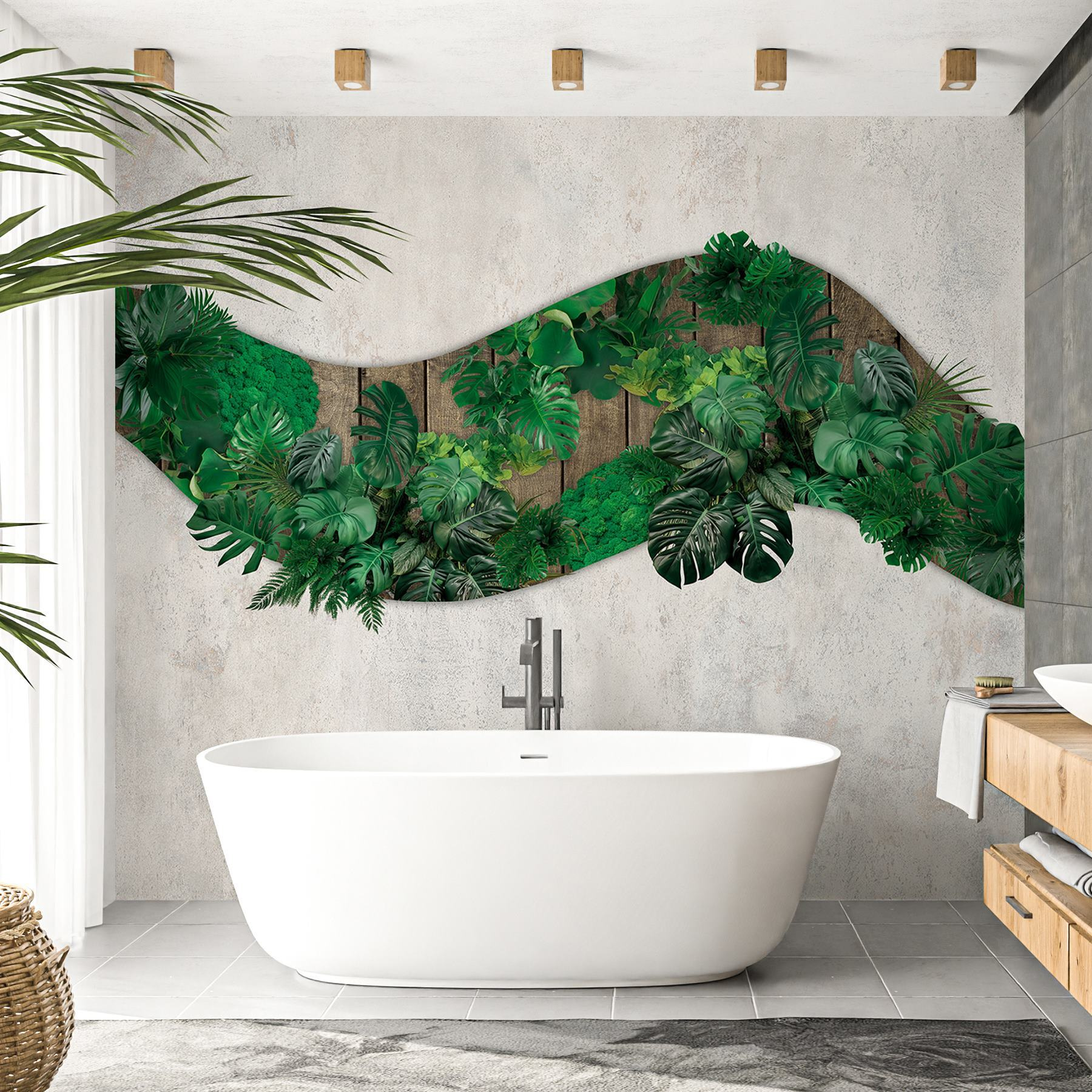 Proměňte každou místnost pomocí této úžasné nástěnné malby se zelenými listy, které se kaskádovitě rozprostírají na dřevěném povrchu. Představte si, že přímo z vašeho obývacího pokoje vstoupíte do živé džungle – každý detail listu přináší svěží tropickou atmosféru, které je těžké odolat. Jako by se příroda sama pozvala do interiéru a stěny ožily přívalem života. Představte si, jak si lebedíte na útulné pohovce, dovnitř proudí sluneční světlo a pozadí tvoří tato nádherná nástěnná malba. Mluvte o okamžitém zlepšení nálady! Ať už se jedná o domácí kancelář nebo odpočinkovou zónu, je to perfektní volba pro každého, kdo chce přidat trochu zábavy a vkusu. Navíc, kdo by neměl rád nádech venkovního prostředí, bez brouků?