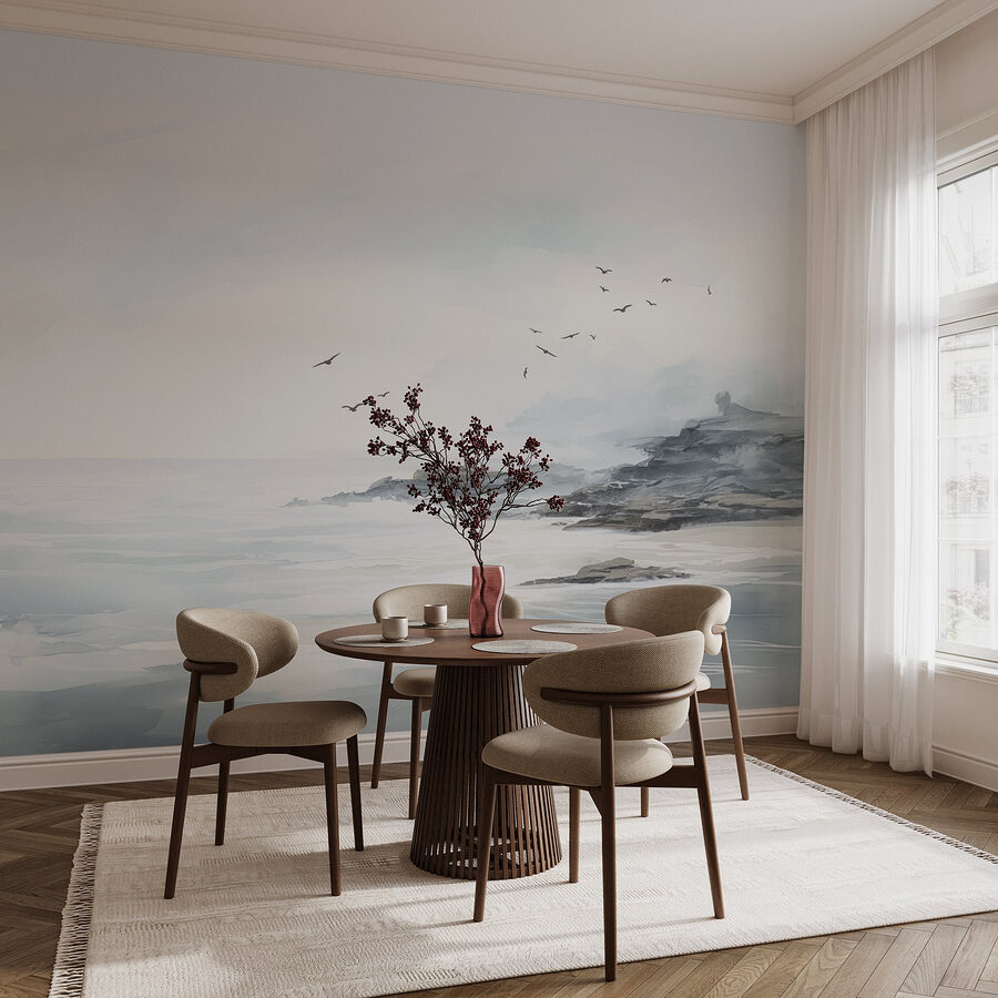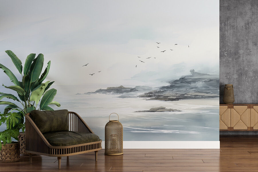 Proměňte každou místnost pomocí této okouzlující nástěnné malby “Ptáci letící nad skalnatou pláží”. Představte si, že se probouzíte s jemnými odstíny oceánu a těmi zasněnými ptáky plujícími po obloze. Je to jako mini dovolená přímo na vaší zdi! Jemné barvy vytvářejí uklidňující atmosféru, která je ideální pro pohodový obývací prostor nebo klidné útočiště v ložnici.