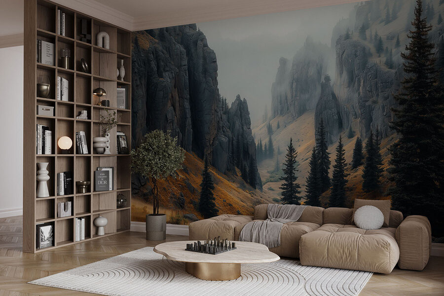 Proměňte každou místnost v útulné horské útočiště pomocí této úžasné nástěnné malby skalnatých hor zahalených v jemné mlze. Představte si, že se místo prázdné zdi probudíte do této klidné krajiny – to je něco, co vám zlepší náladu! Sytě zelená barva stromů vyniká na pozadí zemitých tónů a pozve dotek přírody přímo do vašeho prostoru. Je ideální pro ty, kteří sní o útěku do divočiny, ale přesto ocení teplý šálek kávy doma. Jen si to představte: Nedělní rána strávená popíjením tohoto nápoje, zatímco děti stavějí pevnosti – to je vzpomínka, na kterou se dá vzpomínat! A navíc mlhavá horská atmosféra? Taková atmosféra. Ať už se jedná o obývací pokoj, kancelář nebo třeba meditační koutek, tato nástěnná malba v sobě dokonale spojuje dobrodružství a klid. Je to jako závan čerstvého horského vzduchu bez turistických bot. Tak proč si neudělat malý výlet, aniž byste museli opustit gauč?