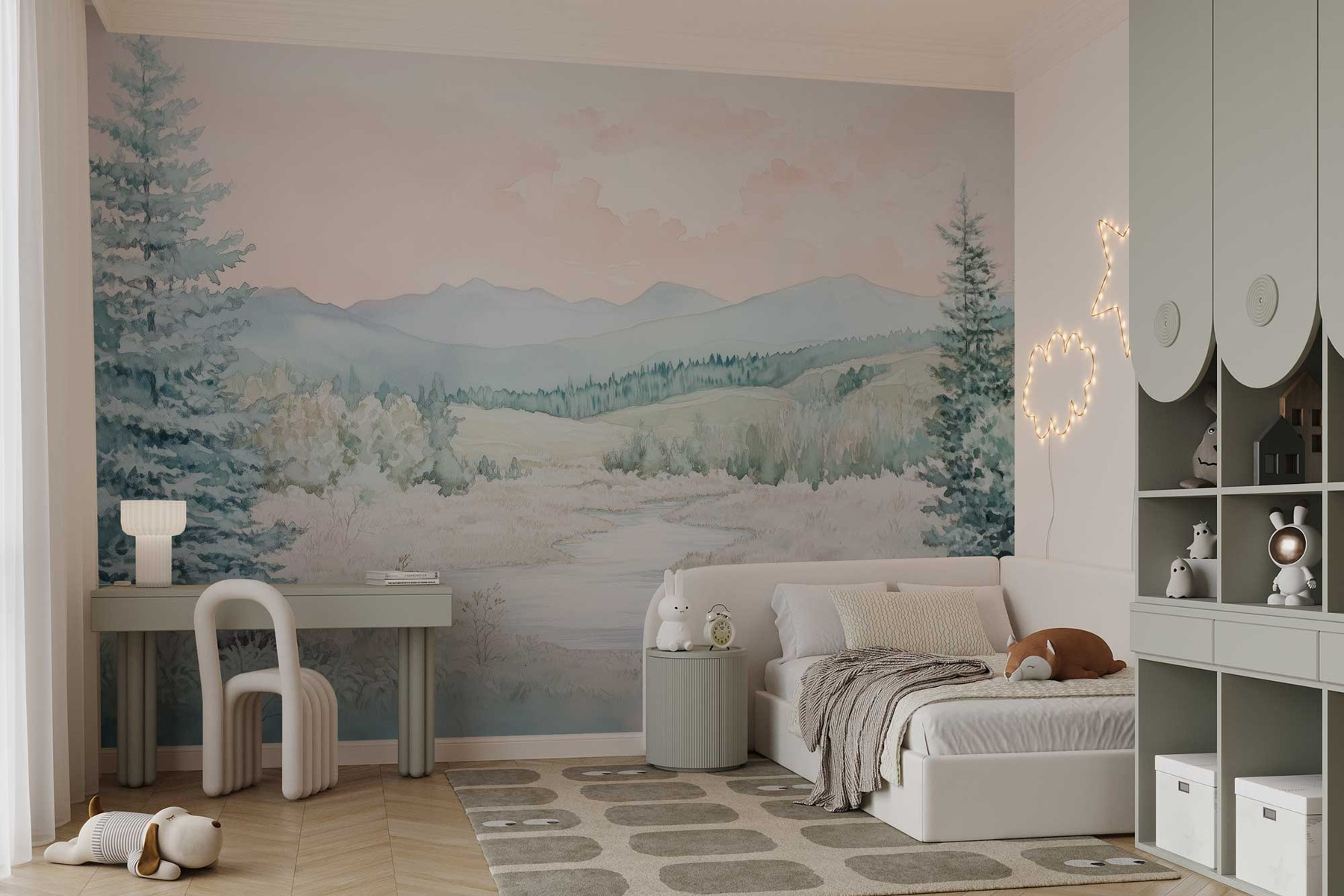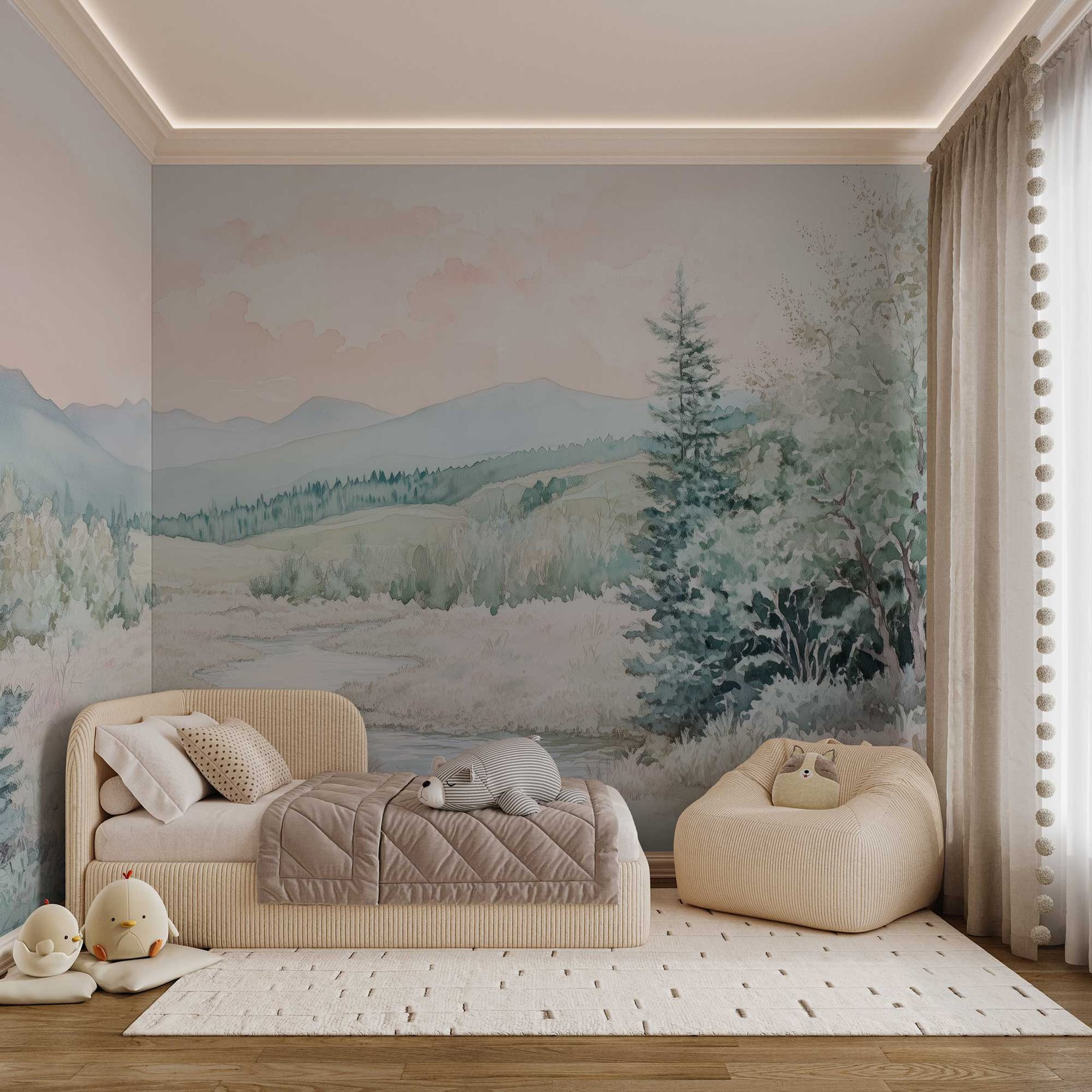 Proměňte obyčejnou stěnu v klidné útočiště pomocí této okouzlující akvarelové nástěnné malby řeky klikatící se v bujném údolí. Tato krása zachycuje jemné pastely a jemné tahy štětcem, takže působí jako útulné objetí pro jakýkoli prostor. Představte si, že popíjíte ranní kávu a díváte se přitom na tento klidný výjev – je to jako mini dovolená přímo u vás doma. Obraz je ideální do ložnic nebo obývacích pokojů a dodává jim uklidňující atmosféru, která dokáže zklidnit i ty nejrušnější dny. Milovníci přírody se zde navíc budou cítit jako doma, obklopeni stromy a nádhernými horami. Jen do toho – vneste do interiéru trochu venkovního prostředí a nechte své stěny vyprávět příběh klidu!