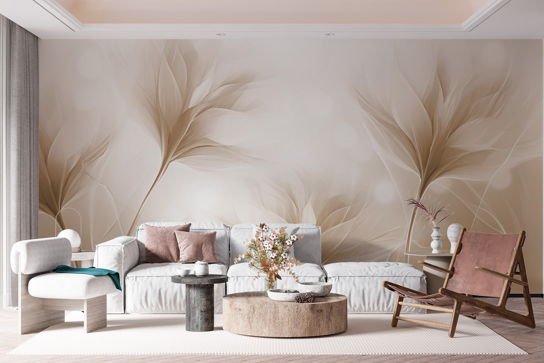 Proměňte svůj prostor s okouzlujícím půvabem “Éterických okvětních lístků v jemných odstínech”. Tato nástěnná malba působí jako jemný šepot přírody, který zahalí místnosti do klidného objetí. Představte si, že popíjíte ranní kávu obklopeni jemnými květinovými vzory, které se pohupují a tančí a vnášejí na každou stěnu uvolněnou atmosféru. Jemné barvy vytvářejí útulnou atmosféru, která je ideální pro odpočinek po dlouhém dni, nebo dokonce podněcuje kreativitu při práci z domova. Je to jako přenést si tajnou zahradu dovnitř, bez hlíny a konve! Pokud tedy máte kout, který potřebuje trochu kouzla, je tato nástěnná malba tou pravou volbou.
