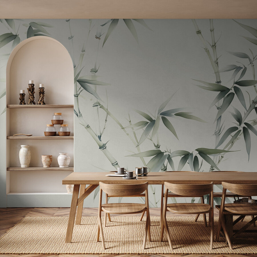 Proměňte svůj prostor v klidné útočiště s nástěnnou malbou Bambusové větve v jemném uspořádání. Představte si, že při každém vstupu do místnosti vstoupíte do oázy klidu. Tyto jemné bambusové listy jako by se jemně pohupovaly a vybízely k nadechnutí čerstvého vzduchu, i když je to jen ve vašem obývacím pokoji. Je to jako mít kousek venkovního prostředí, ale bez hmyzu. Jemné barvy této nástěnné malby dokonale ladí a vytvářejí tak pohodovou atmosféru, že možná zapomenete na tu hromadu prádla. Tato nástěnná malba je ideální pro prostory, kde je klíčem k relaxaci, a nabízí nádherný dotek přírody bez námahy s udržováním rostlin při životě. Vyvolejte klidné vibrace a nechte bambus šeptat klid do vašeho domova.