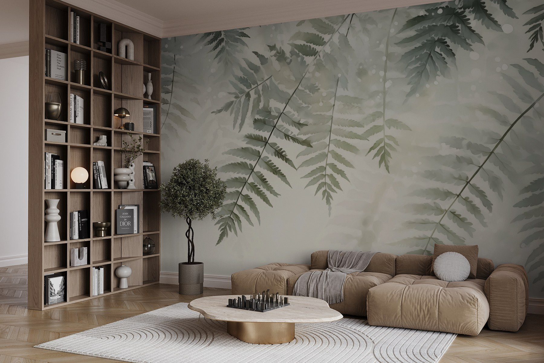 Proměňte každou místnost díky uklidňující atmosféře “Jemného kapradí v měkkém světle”. Tato půvabná nástěnná malba přenese uklidňující esenci přírody přímo na vaše stěny a zalije váš prostor měkkou zelení a jemnými stíny. Představte si, že popíjíte ranní kávu obklopeni těmito kapradinami šeptajícími klid – mluvte o klidném začátku dne!