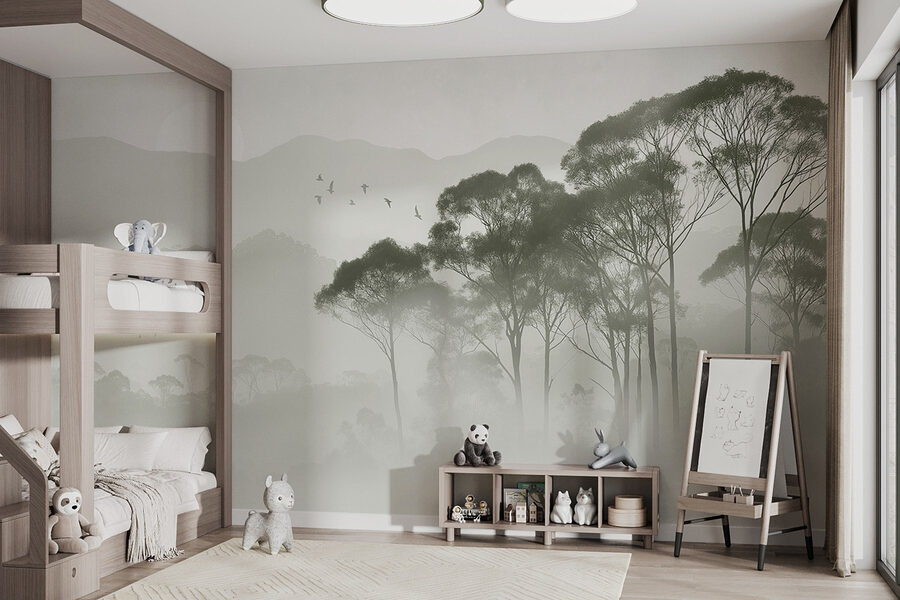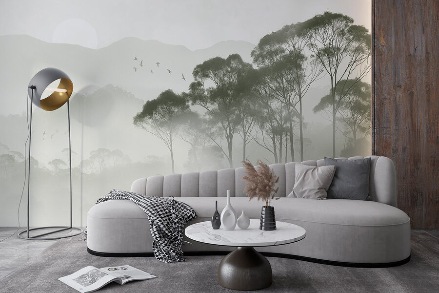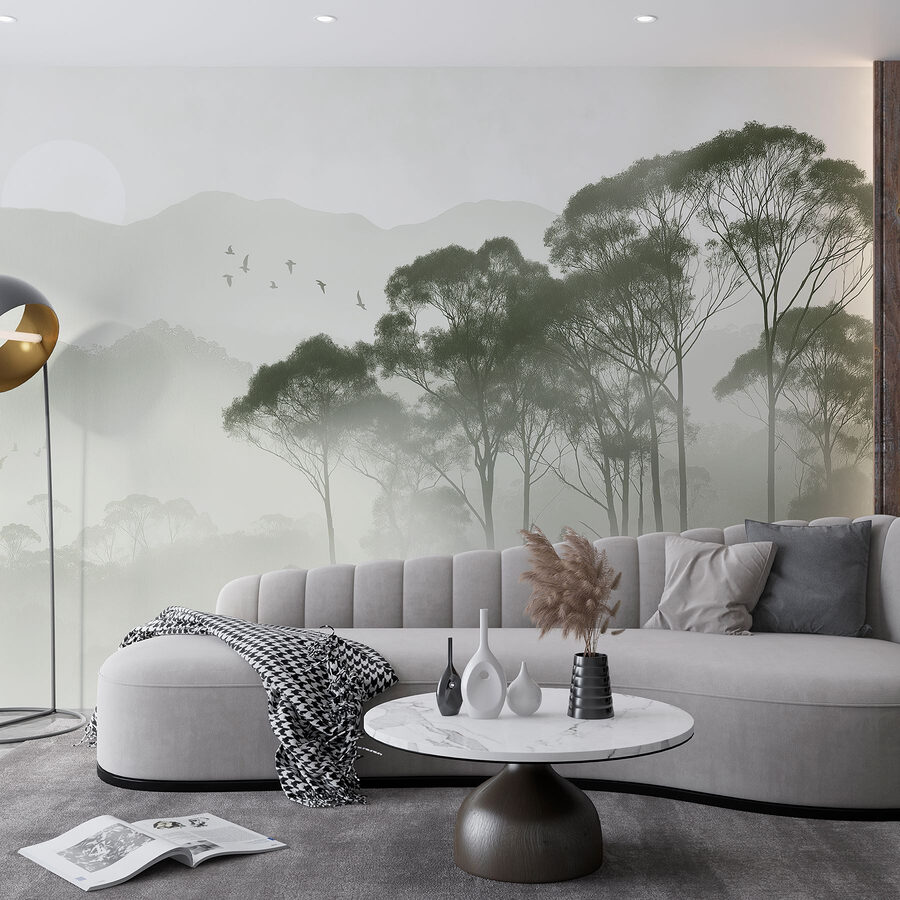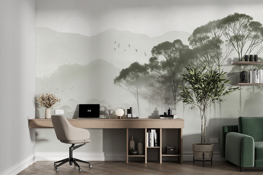 Proměňte svůj prostor pomocí okouzlující nástěnné malby “Ptáci létají nad stromy”. Představte si, že vstoupíte do mlhavého rána, kde jemné odstíny zelené hrají s jemnou šedí a vytvářejí klidné pozadí pro zasněné chvíle. Je to, jako by příroda pošeptala vašemu pokoji tajemství! Představte si to – probudíte se a přivítají vás tito vznášející se ptáci, jako by vás zvali, abyste se přidali k jejich letu. Tato nástěnná malba se bez námahy snoubí s útulným dekorem, takže je dokonalým únikem, aniž byste museli opustit domov. Navíc, kdo by nemiloval uklidňující atmosféru lesa, že? Ať už dodá teplo čtecímu koutku, nebo vdechne život nudné chodbě, určitě vás inspiruje k malému putování. Jen do toho, nechte své stěny vyjádřit lásku k přírodě!