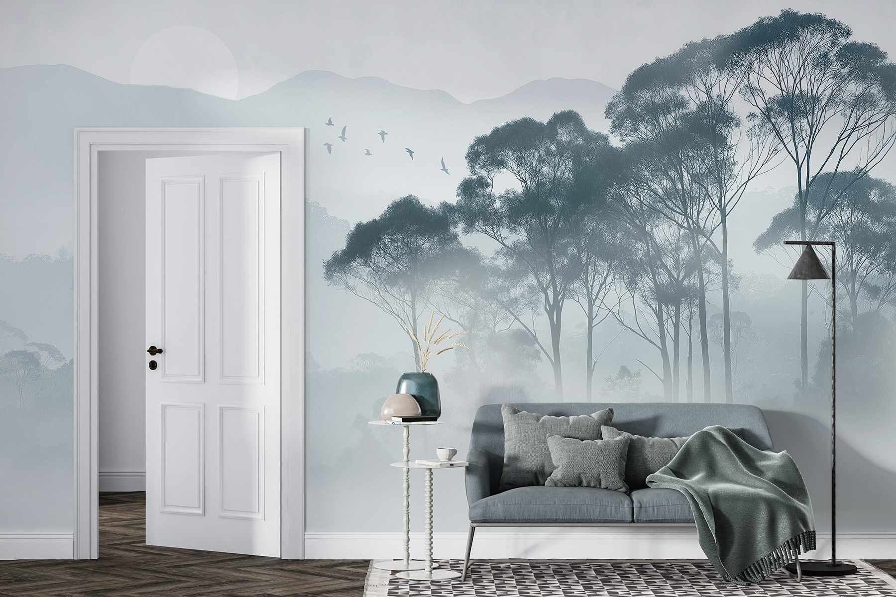 Proměňte každou místnost pomocí této okouzlující nástěnné malby s motivem zasněného lesa plného mlhy. Představte si, že se každé ráno probouzíte obklopeni měkkými siluetami stromů, které si šeptají svá tajemství a pohupují se v jemném vánku. Tlumené tóny navozují pocit klidu jako při útulné ranní procházce přírodou. Tento design si krade pozornost, aniž by byl okázalý – ideální pro ty, kteří chtějí ve svém prostoru dotek klidu. Navíc, dokážete si představit, jak se před ním schoulíte s dobrou knihou? Je to jako přenést venkovní přírodu dovnitř, bez hmyzu. Pokaždé, když vstoupíte do místnosti, čeká na vás krásný únik.