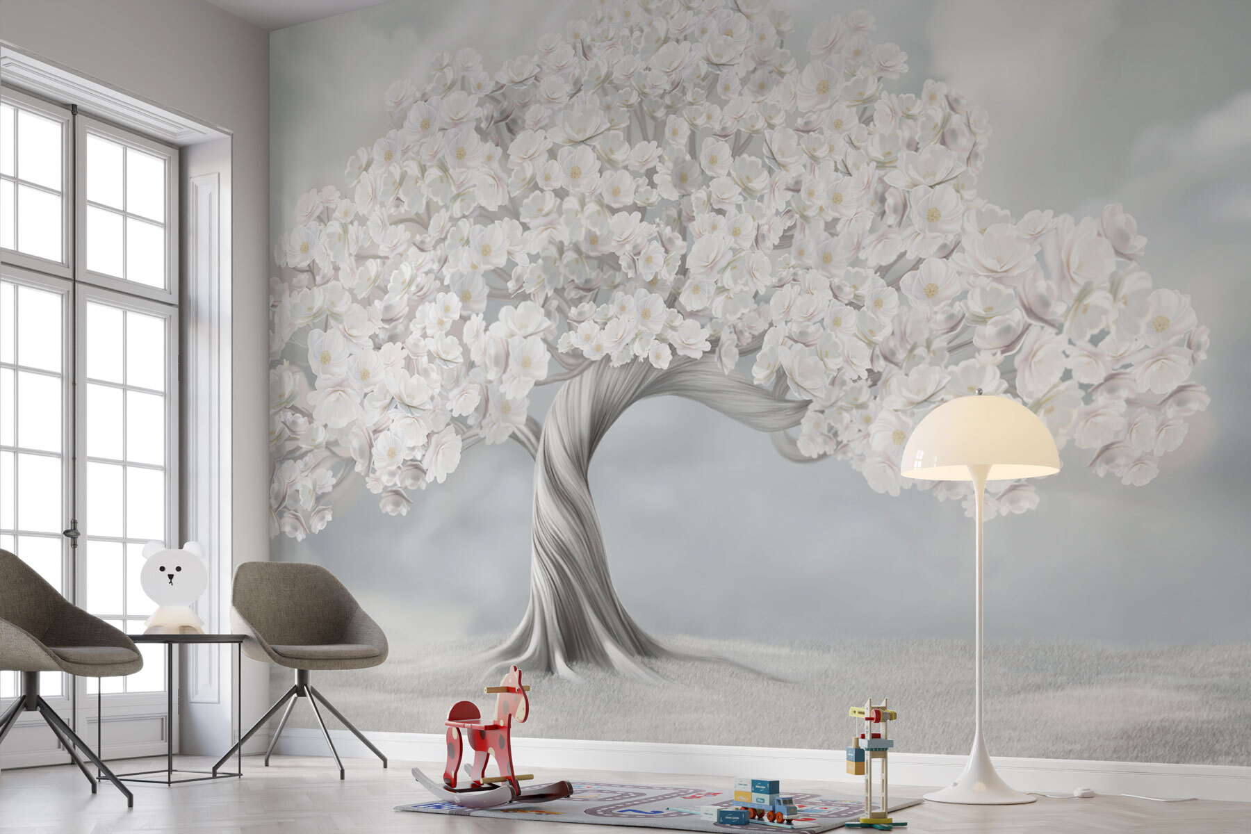Proměňte jakoukoli místnost pomocí této okouzlující nástěnné malby stromu posetého jemnými bílými květy. Evokuje klidné procházky klidnou japonskou zahradou, kde každý okvětní lístek šeptá příběhy klidu. Představte si, že se probouzíte s tímto krásným výhledem, který je jemnou připomínkou umělosti přírody. Jemné barvy vytvářejí uklidňující atmosféru; je to jako mít v sobě malý kousek přírody, ideální pro útulné prostory. Přátelé si toho všimnou – možná se zeptají, jestli jste se tajně nestali botanickým umělcem. Váš byt bude působit živě a svěže, bude vybízet k úsměvům a nádechu tepla.