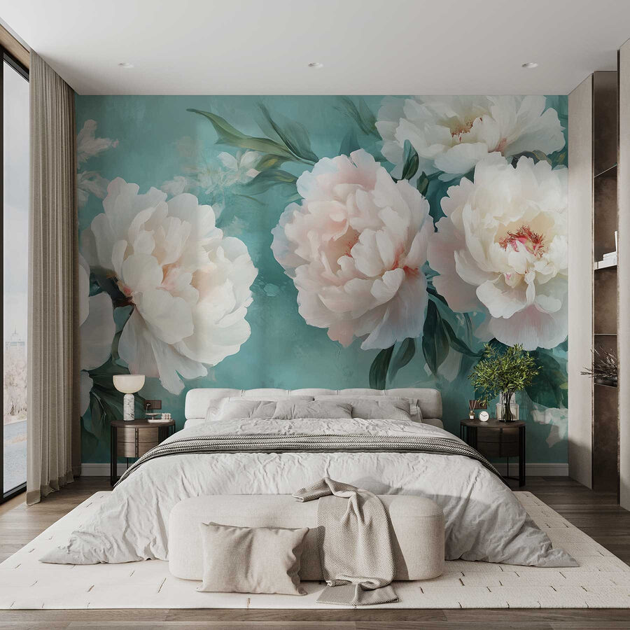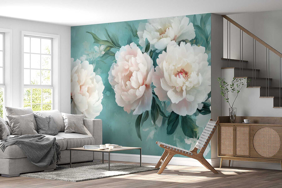 Oživte prázdné stěny touto úžasnou nástěnnou malbou bílých pivoněk, která je ideální pro každého, kdo chce ve svém prostoru trochu květinového kouzla. Představte si, že vejdete do místnosti, která bude vypadat jako rozkvetlá zahrada – jemné okvětní lístky přímo vybízejí k obdivu. Jemné tyrkysové odstíny vám připomenou letní oblohu, takže i ten nejdeštivější den bude jako vánek. Komu by se nelíbilo popíjet kávu obklopen těmito krásami? Je to jako přenést si kousek přírody do interiéru, aniž byste museli mít zelený palec. Věřte mi, že tato nástěnná malba bude sklízet komplimenty rychleji než slunečnice na poli!