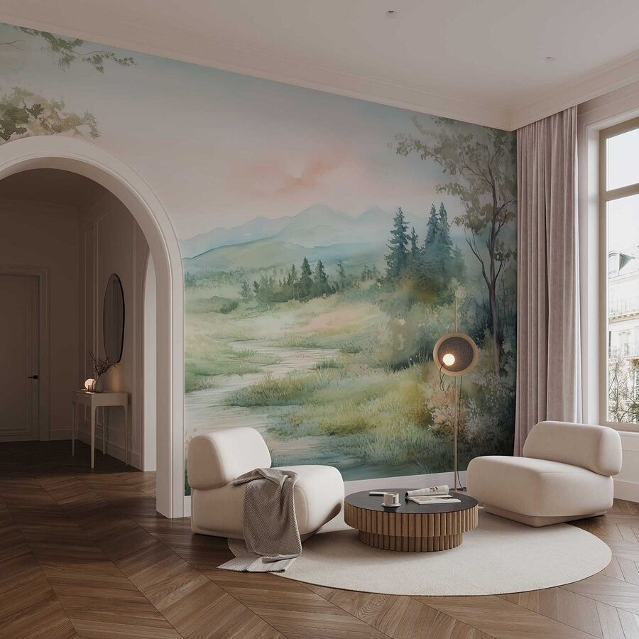 Proměňte jakýkoli prostor v klidné útočiště pomocí této úžasné akvarelové nástěnné malby, která zachycuje řeku vinoucí se bujným údolím. Představte si, že stojíte na místě, vdechujete čerstvý vzduch ranní mlhy a jemné odstíny tančí po plátně. Je to jako pozvat si kus přírody dovnitř – není třeba mít turistické boty. Tato nástěnná malba, která se skvěle hodí do živých obývacích pokojů nebo útulných zákoutí, přináší pocit klidu a šplouchání barev. Představte si, jak popíjíte kávu a za těmito horami vychází slunce. Kdo ví, možná vás to inspiruje k dobrodružnému dni – nebo jen k příjemnému lenošení. Vážně, vaše stěny vám poděkují!