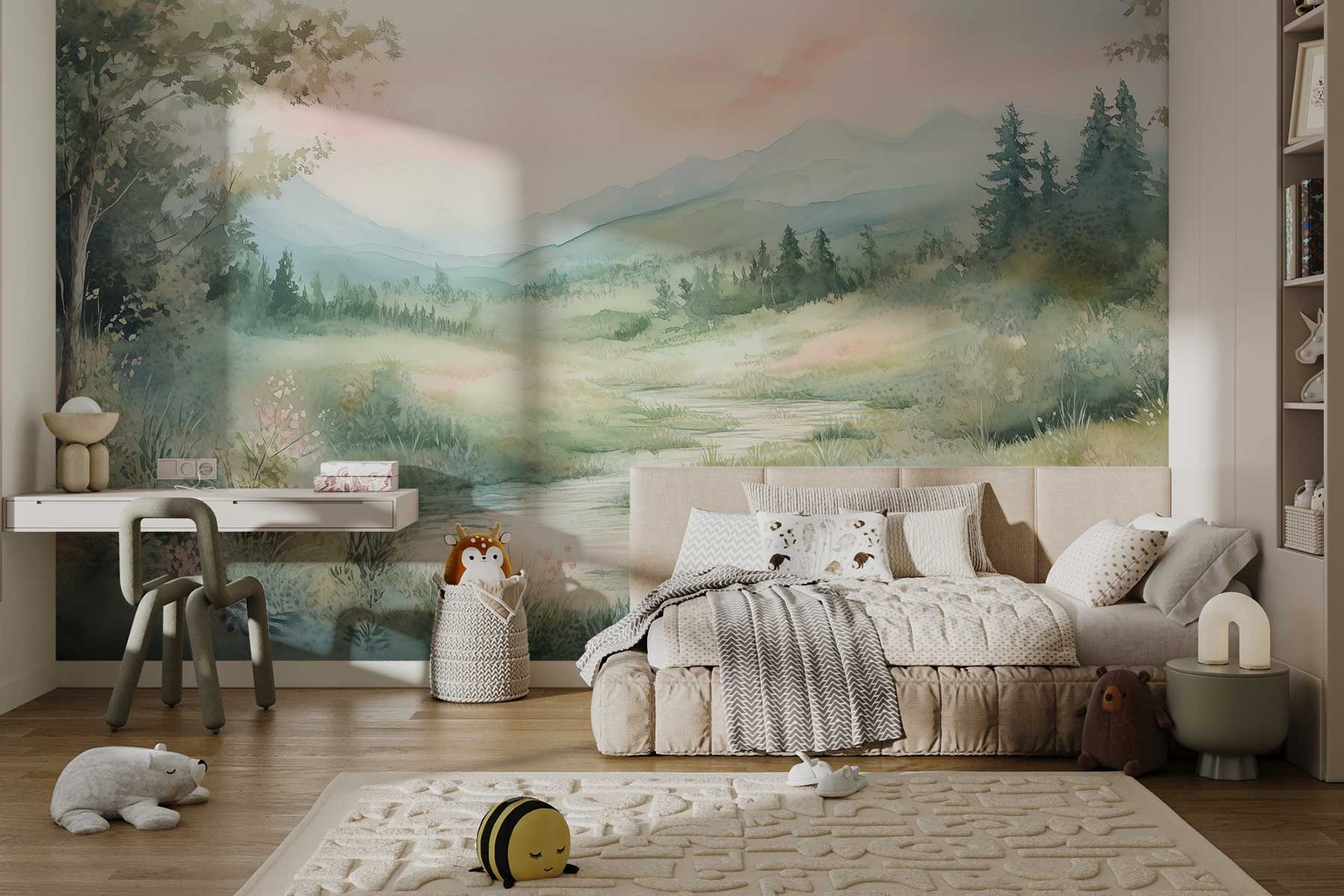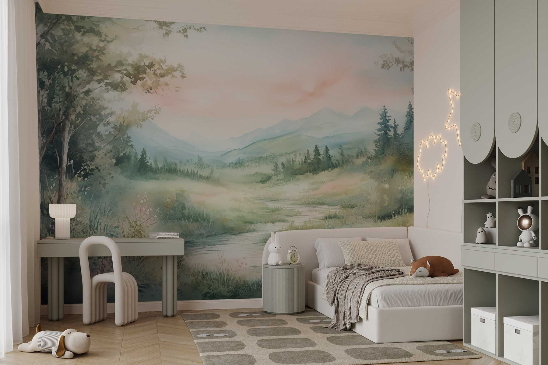 Proměňte jakýkoli prostor v klidné útočiště pomocí této úžasné akvarelové nástěnné malby, která zachycuje řeku vinoucí se bujným údolím. Představte si, že stojíte na místě, vdechujete čerstvý vzduch ranní mlhy a jemné odstíny tančí po plátně. Je to jako pozvat si kus přírody dovnitř – není třeba mít turistické boty. Tato nástěnná malba, která se skvěle hodí do živých obývacích pokojů nebo útulných zákoutí, přináší pocit klidu a šplouchání barev. Představte si, jak popíjíte kávu a za těmito horami vychází slunce. Kdo ví, možná vás to inspiruje k dobrodružnému dni – nebo jen k příjemnému lenošení. Vážně, vaše stěny vám poděkují!