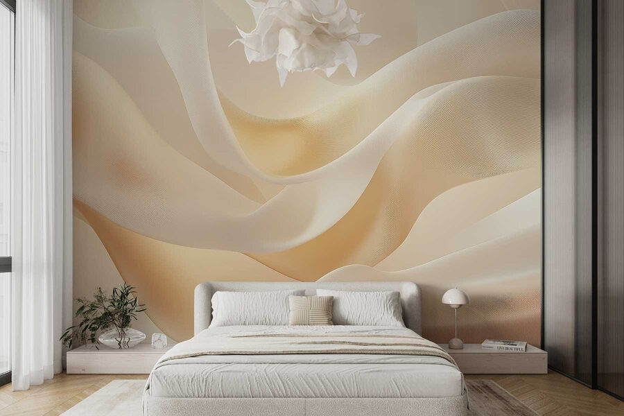 Proměňte svůj prostor pomocí nástěnné malby “Jemné vlny měkké tkaniny”. Představte si, že vejdete do místnosti, kde stěny jako by plynuly a zahalily váš prostor do jemných, uklidňujících barev. Je to jako zabalit se do útulné deky bez objemu! Tento akvarelový vzor je ideální pro vytvoření klidné atmosféry a dodává jí nádech elegance a tepla.