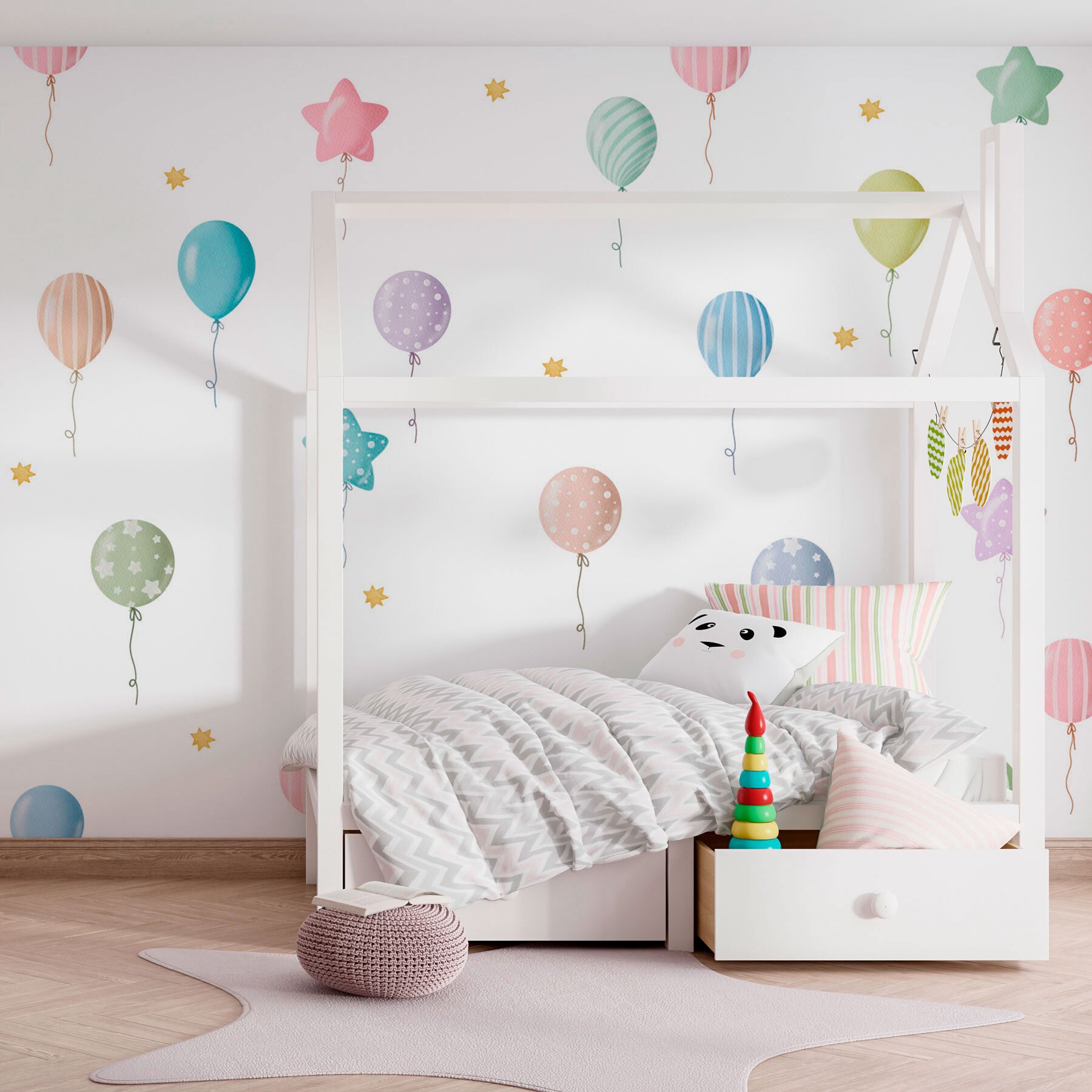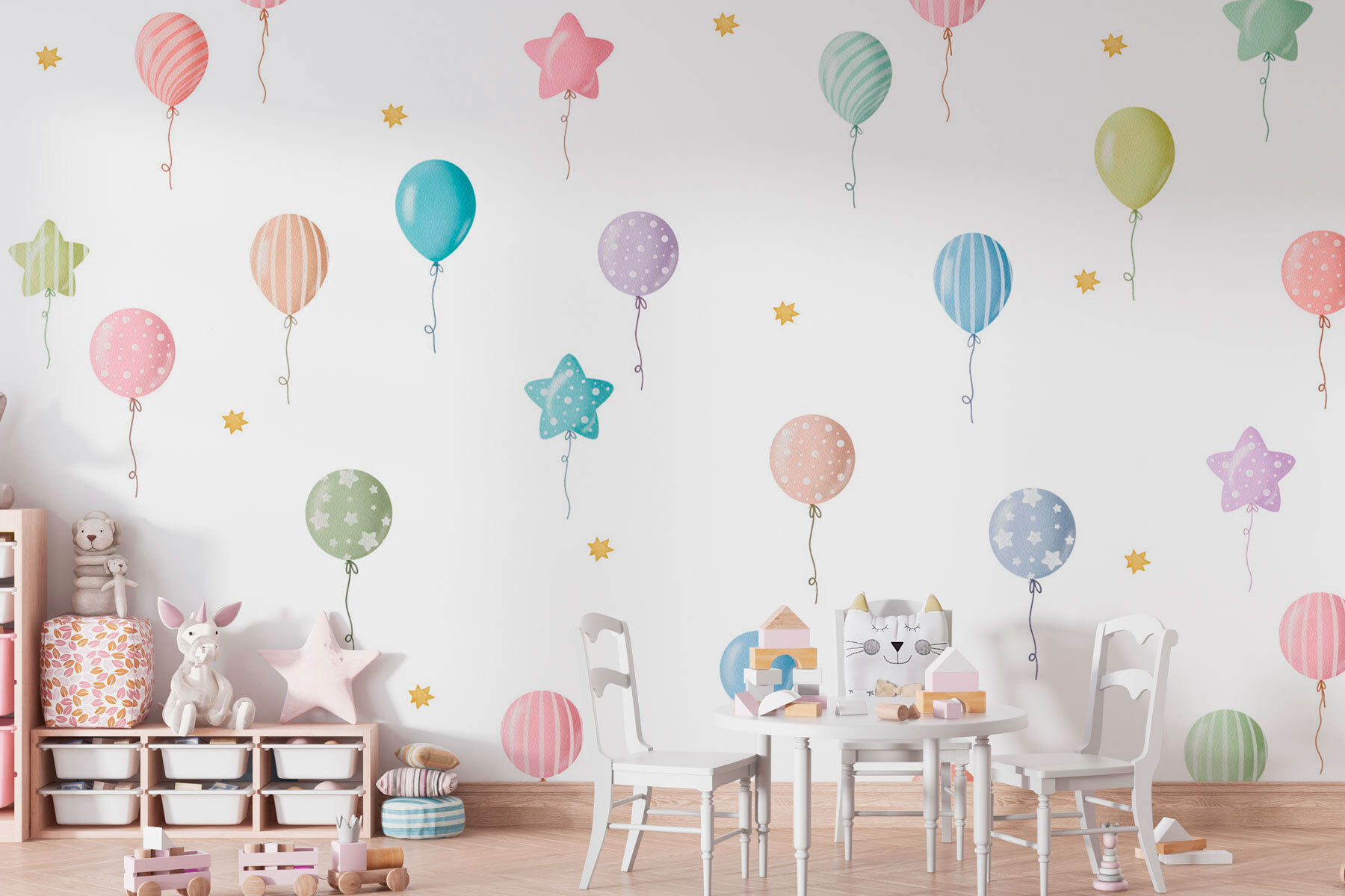 Rozjasněte každou místnost touto nádhernou fototapetou s okouzlujícími balónky a rozmarnými hvězdami! Představte si, že vejdete do prostoru, kde se vznášejí pastelové balónky jako připravené na večírek, zatímco hravé hvězdy se třpytí jen kousek od vás. Je ideální pro dětské pokoje, ale upřímně, kdo říká, že se dospělí nemohou kochat kouzlem balónků? Představte si malé děti, jak pod tímto veselým vzorem sní a cítí se jako v pohádce. Vyvolává radost, smích a nádech nostalgie. Nechte tuto fototapetu rozpoutat dobrodružství a rozmar – ideální pro proměnu nevýrazné zdi v plátno snů!