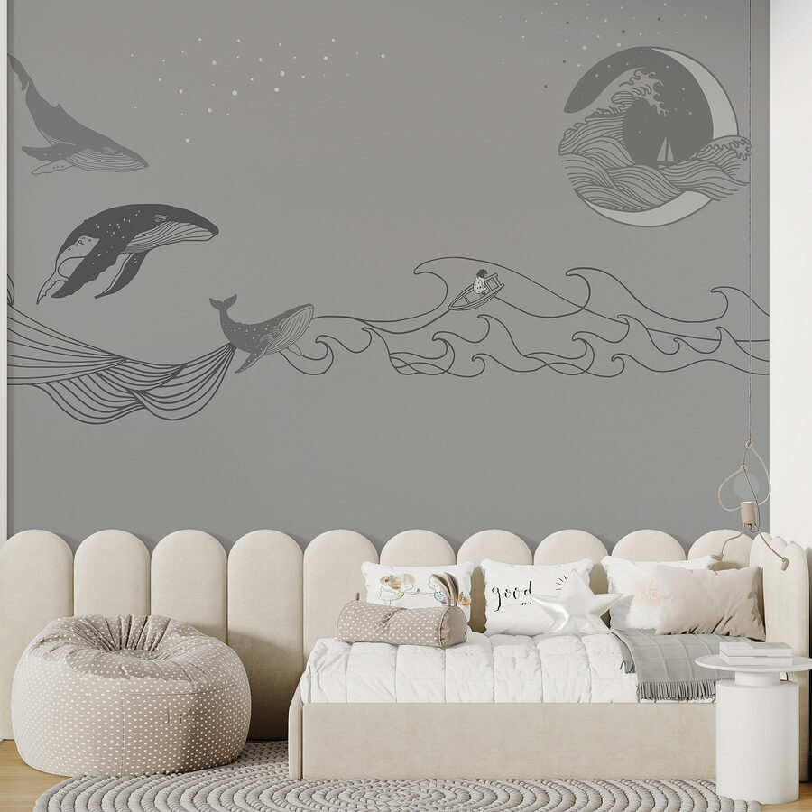 Tato nástěnná malba přináší uklidňující atmosféru, ideální do obývacích pokojů nebo útulných zákoutí. Představte si, jak popíjíte ranní kávu, kradmo se díváte na tyto něžné obry a cítíte, jak všechny starosti odplouvají – jako opalovací krém v horkém dni! Měkké barvy vybízejí k pocitu klidu, takže je to nádherná kulisa pro líná odpoledne nebo hluboké rozhovory. Je to víc než dekorace, je to zážitek, který čeká na své rozvinutí. Kdo ví, třeba vás inspiruje k několika vlastním námořním dobrodružstvím!