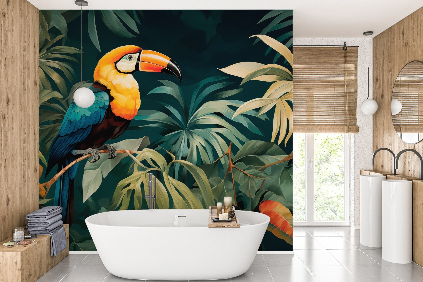 Proměňte svůj prostor s nádechem kouzla přírody! Tato nástěnná malba s živým ptákem sedícím na větvi vnese dotek džungle přímo k vám domů. Představte si, jak rozzáří místnost a naplní ji pocity dobrodružství a klidu. Je to jako mít na zdi malý kousek ráje!