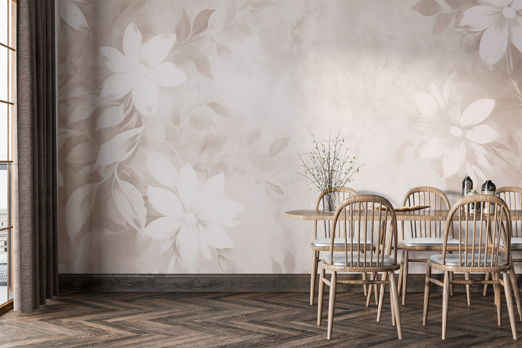Proměňte každou místnost pomocí této okouzlující nástěnné malby s bílým a šedým květinovým vzorem, který působí jako jemný jarní vánek. Představte si, že vstoupíte do prostoru, kde jemné pivoňky a rozkvetlé růže tančí po stěnách a přivolávají teplo a klid. Tato nástěnná malba, která se skvěle hodí do útulného obývacího pokoje nebo klidné ložnice, dodá ten správný nádech elegance. Je to jako mít v interiéru tajnou zahradu – samozřejmě bez brouků! Jemné barvy vytvářejí uklidňující atmosféru a jsou ideální kulisou pro relaxační večery nebo veselá setkání. Vaše stěny vám poděkují!