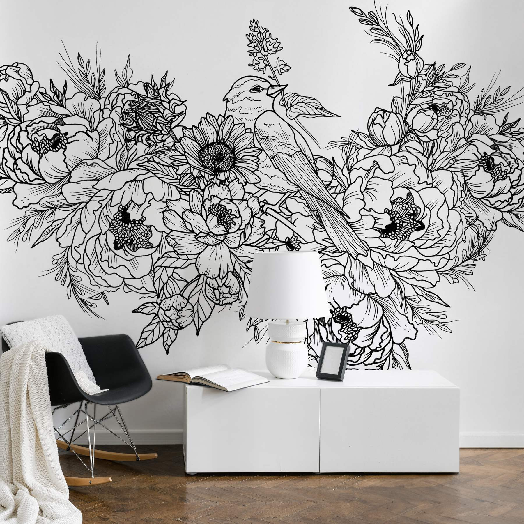 Proměňte jakýkoli prostor pomocí této živé nástěnné malby s okouzlujícím ptáčkem uprostřed rozkvetlých květin. Je to jako přenést si kousek přírody přímo do obývacího pokoje. Představte si, že popíjíte kávu, díváte se na tento rozkošný výjev a cítíte se o něco lehčí, jako by se jaro rozhodlo natrvalo usídlit na vaší zdi.